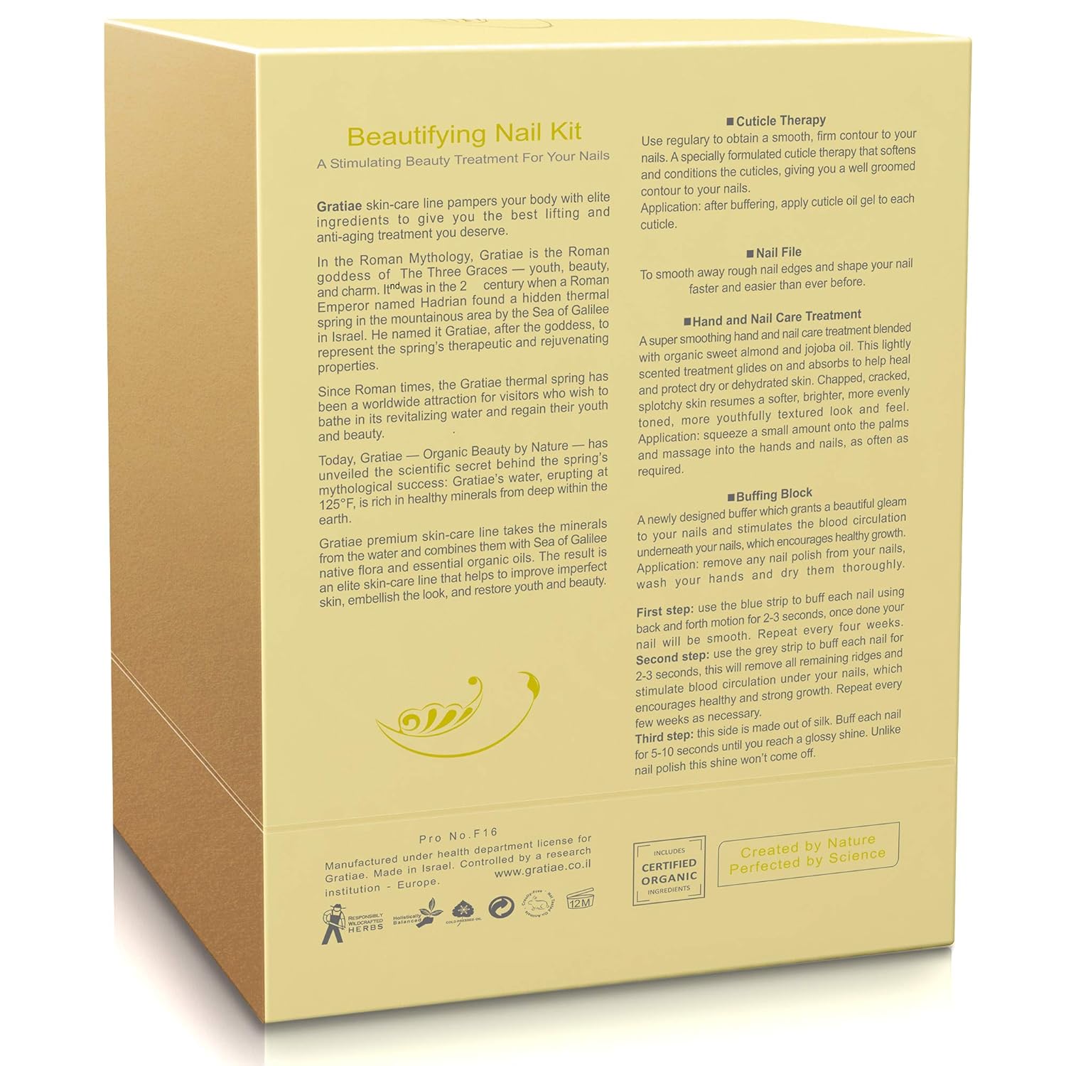 Organic Beauty By Nature Nail buffer Kit/Set - for Salon Quality Manicure - Nail Filing Kit with 3- Step shine Buffer, Cuticle Oil, Hand Lotion - Manicure Set - Green Tea and Ginger