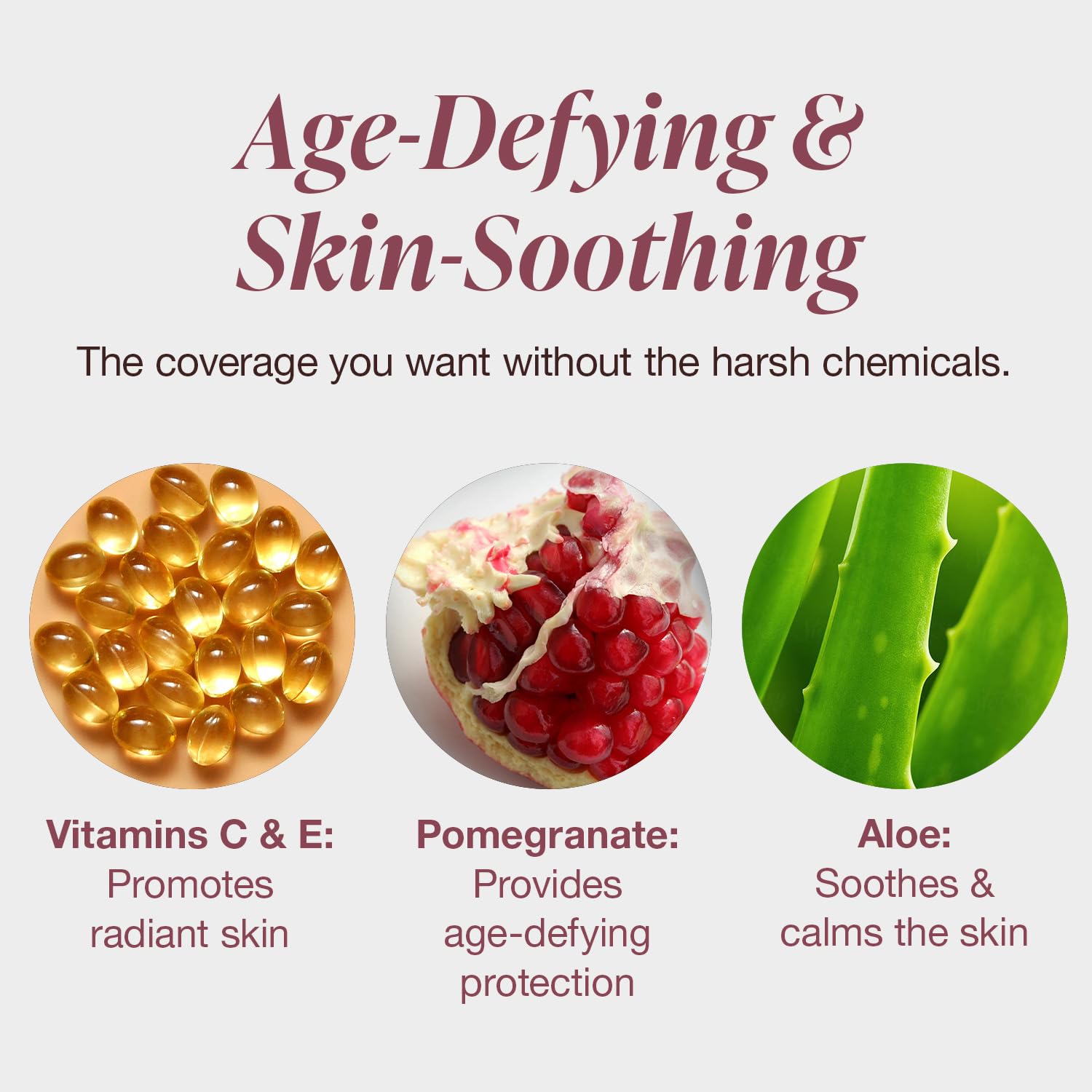 - NATURAL FORMULA: Our age-defying, skin-soothing pressed powder is made with Pomegranate, White Tea, Red Tea, and Sea Kelp to illuminate your natural glow while reducing the appearance of free radical damage. Has buildable coverage for total flexibility