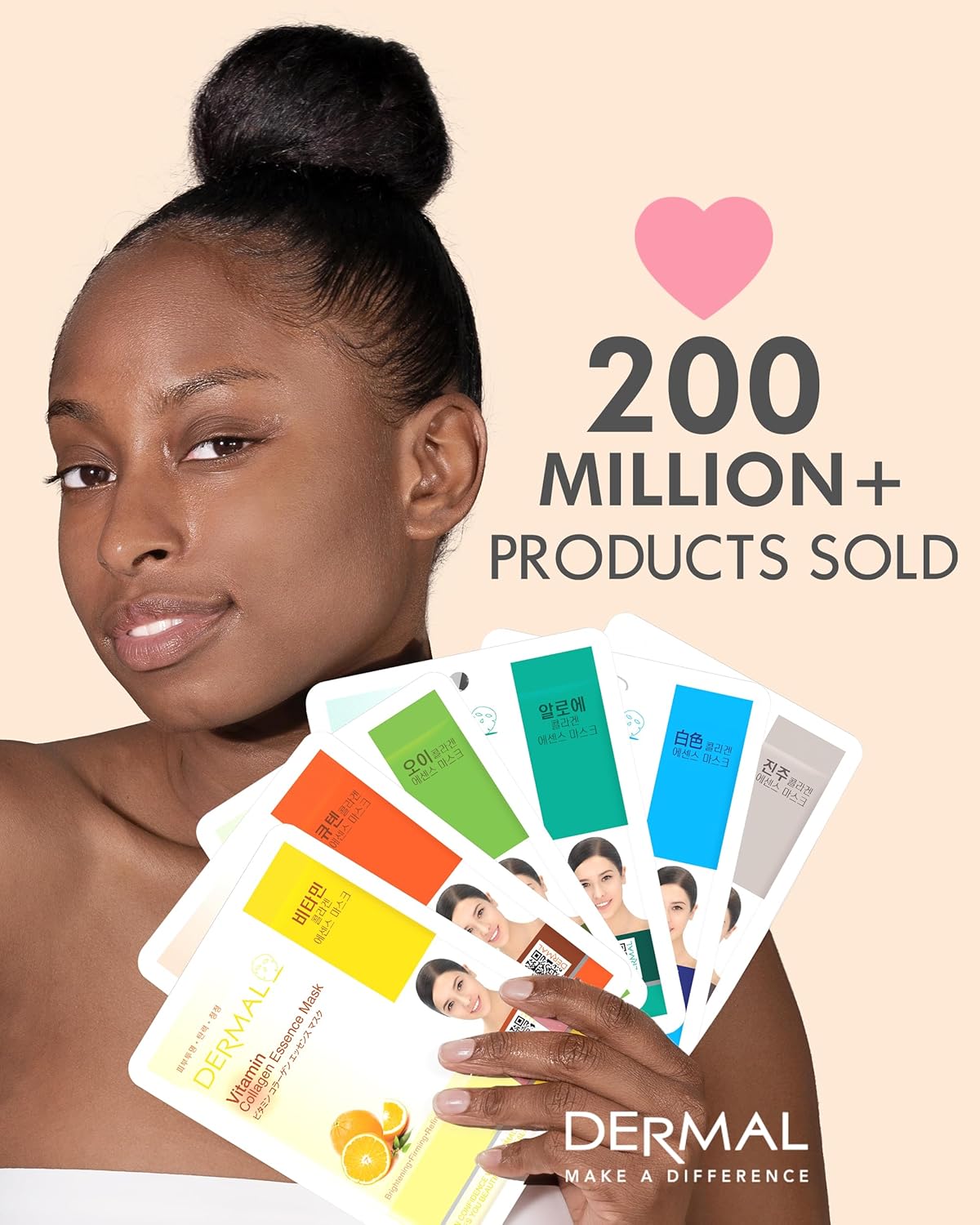 DERMAL Acai Berry Collagen Essence Facial Mask Sheet 23g Pack of 10 - Moisturizing & Firming Keeps Skin Healthy and Clean, Daily Skin Treatment Solution Sheet Mask