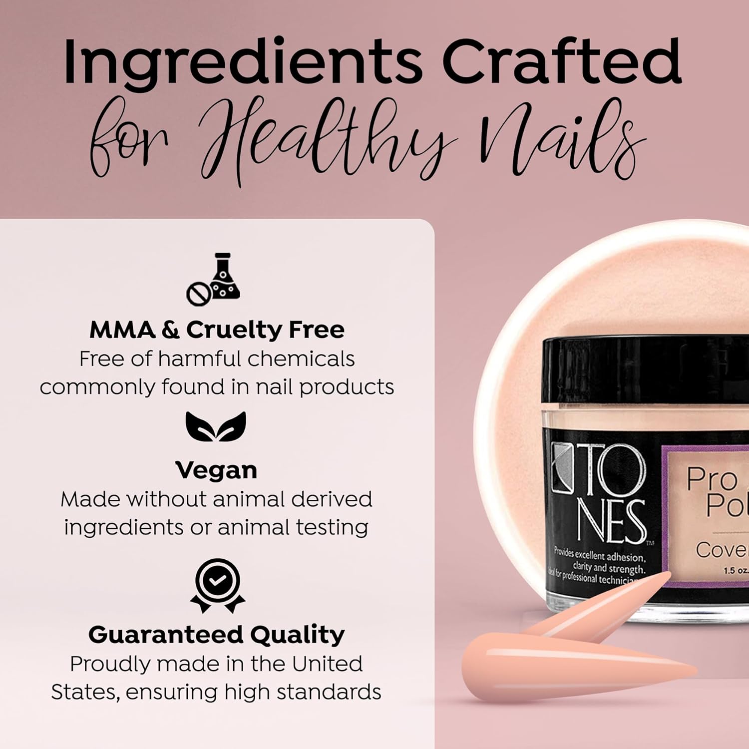 Tones Pro Acrylic Nail Powder, Cover Almond (Soft Nude Beige), (1.5 Fl Oz) - Long-Lasting & Non-Yellowing Polymer for Salon Quality Nail Extensions & 3D Art