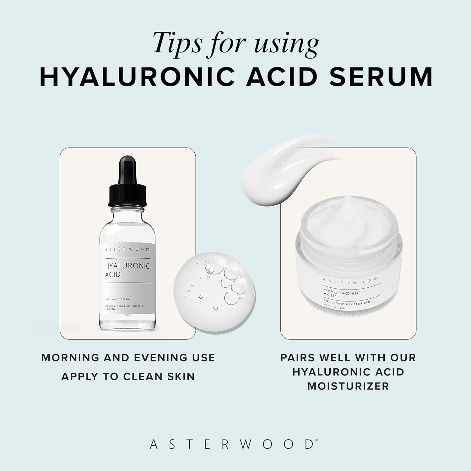 Asterwood Hyaluronic Acid Serum for Face - Plumping, Anti-Aging, Hydrating - Fragrance-Free - 2 Fl Oz