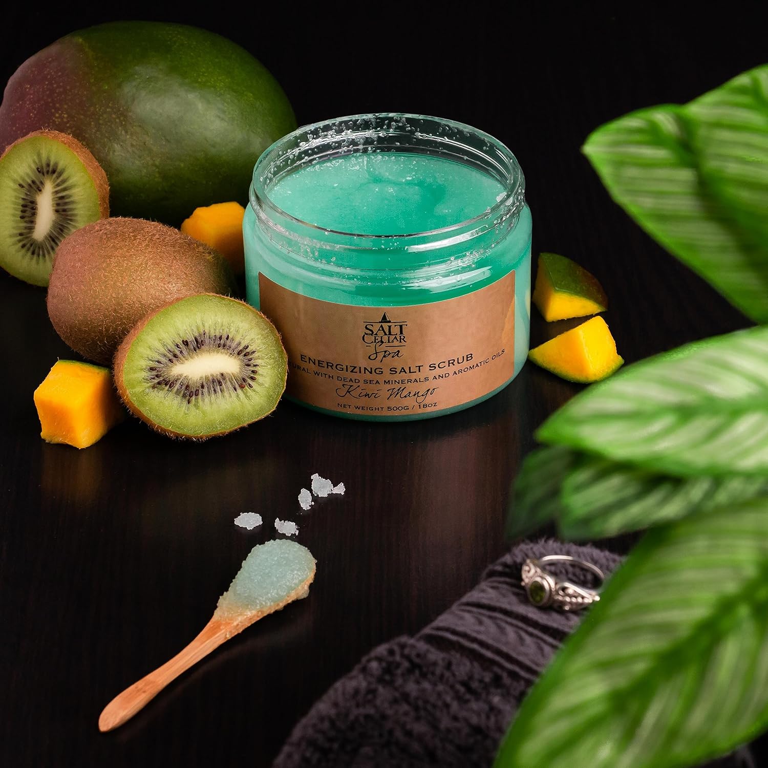 Salt Cellar Spa Skin Reviving Kiwi Mango Salt Scrub - Energize Your Skin with Dead Sea Minerals - Revive, Refresh, and Rejuvenate - Made in Israel, Cruelty-Free, 18 oz.