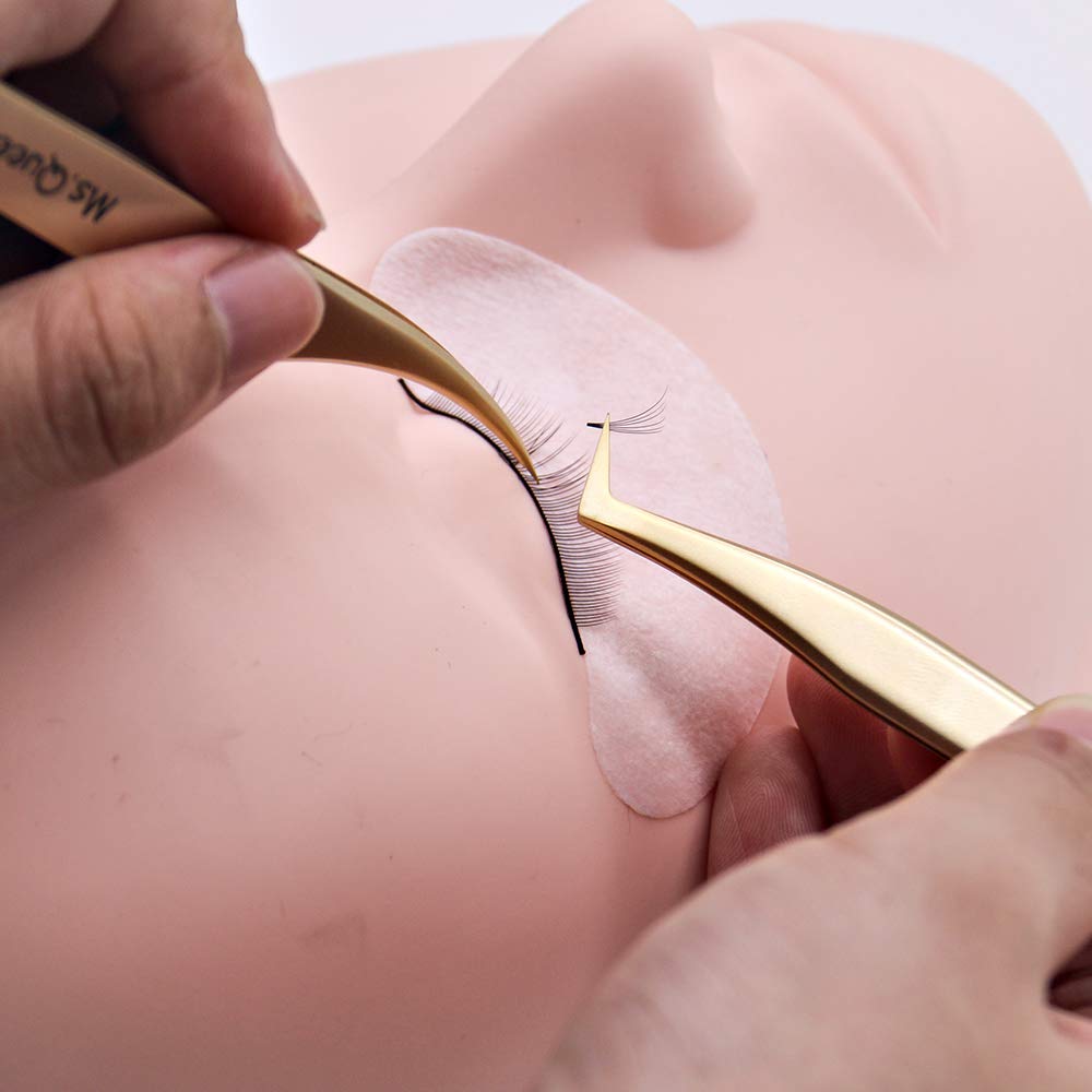 Ms.Queen Eyelash Extension Tweezers Set-Precision Tweezers for 2D-6D Volume&Individual False Lashes Extensions with PU Storage Case-Golden (Dolphin Tweezers/M003-3)