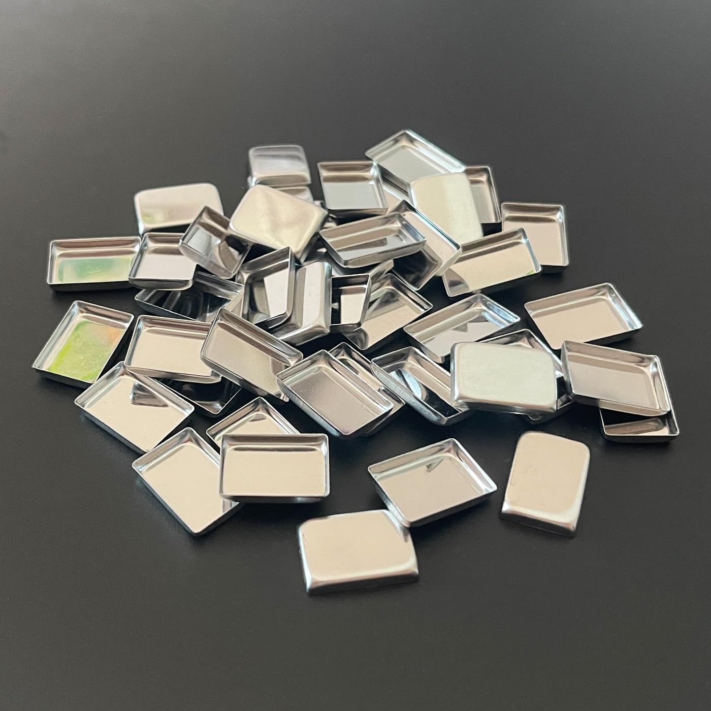 - Package Including: 100pcs rectangle metal pans