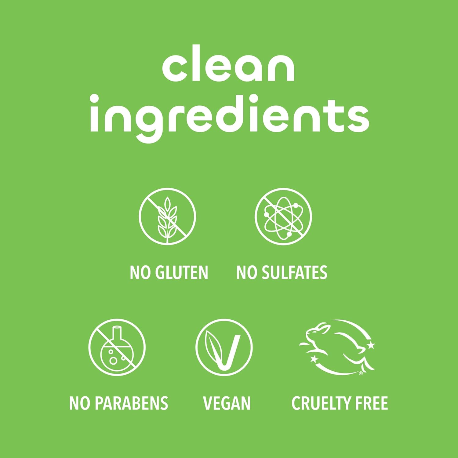 - Vegan, cruelty free (no animal testing) and Leaping Bunny certified with NO dyes, parabens, SLS or gluten and our bottle is made of 100% post-consumer recycled plastic and is recyclable