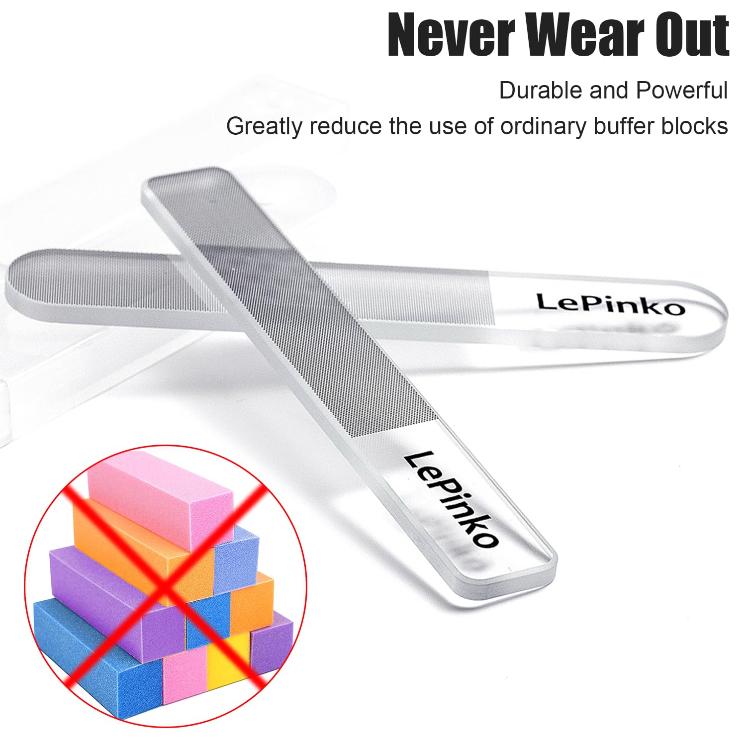 - Will Never Wear Out - This nail smoother is made from high-density glass which will never wear out. It is useful and powerful tool both for nature nails care and nail-pre of DIY nail art. It can greatly reduce the use of ordinary buffer blocks.