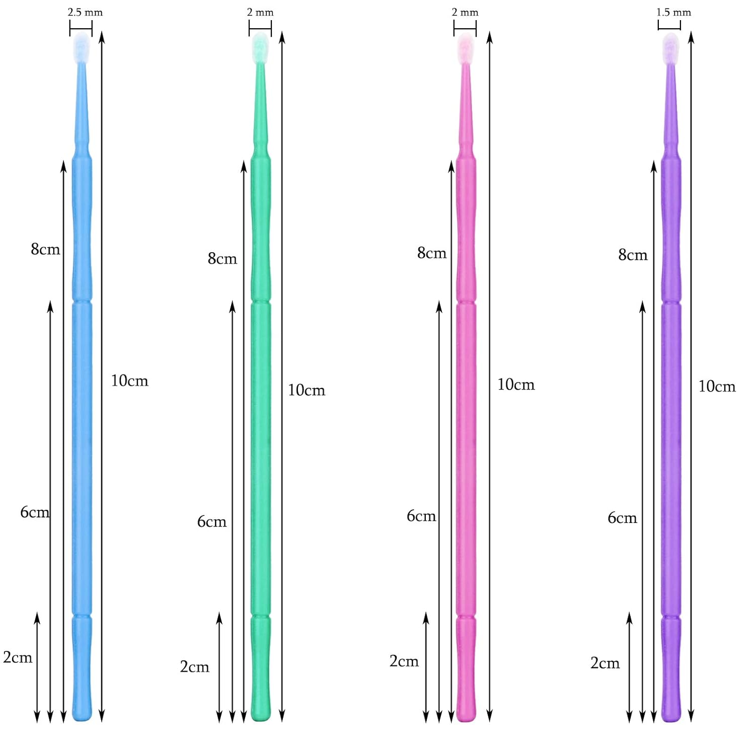 - Microfiber Tips And Plastic Handle; Length:10cm / 3.9β,Head Diameter: 1.5mm/Small Size(Dark Purple); Package Includes 500pcs Micro Brushes, And Every 100pcs In A Clear Plastic Bags Which Keeps Them Clean And Tidy.