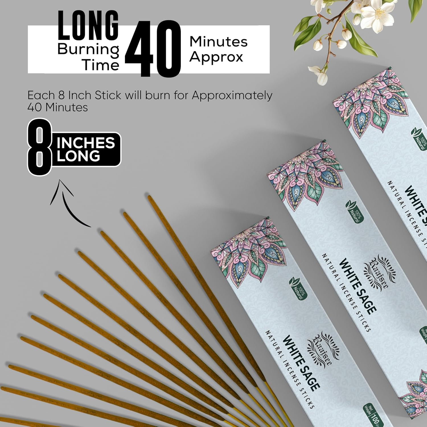 Raajsee White Sage Incense Sticks (180 gm), 100% Pure Organic Natural Hand Rolled Free from Chemicals - Perfect for Aromatherapy, Cleansing, Meditation, and Church (Pack of 12)