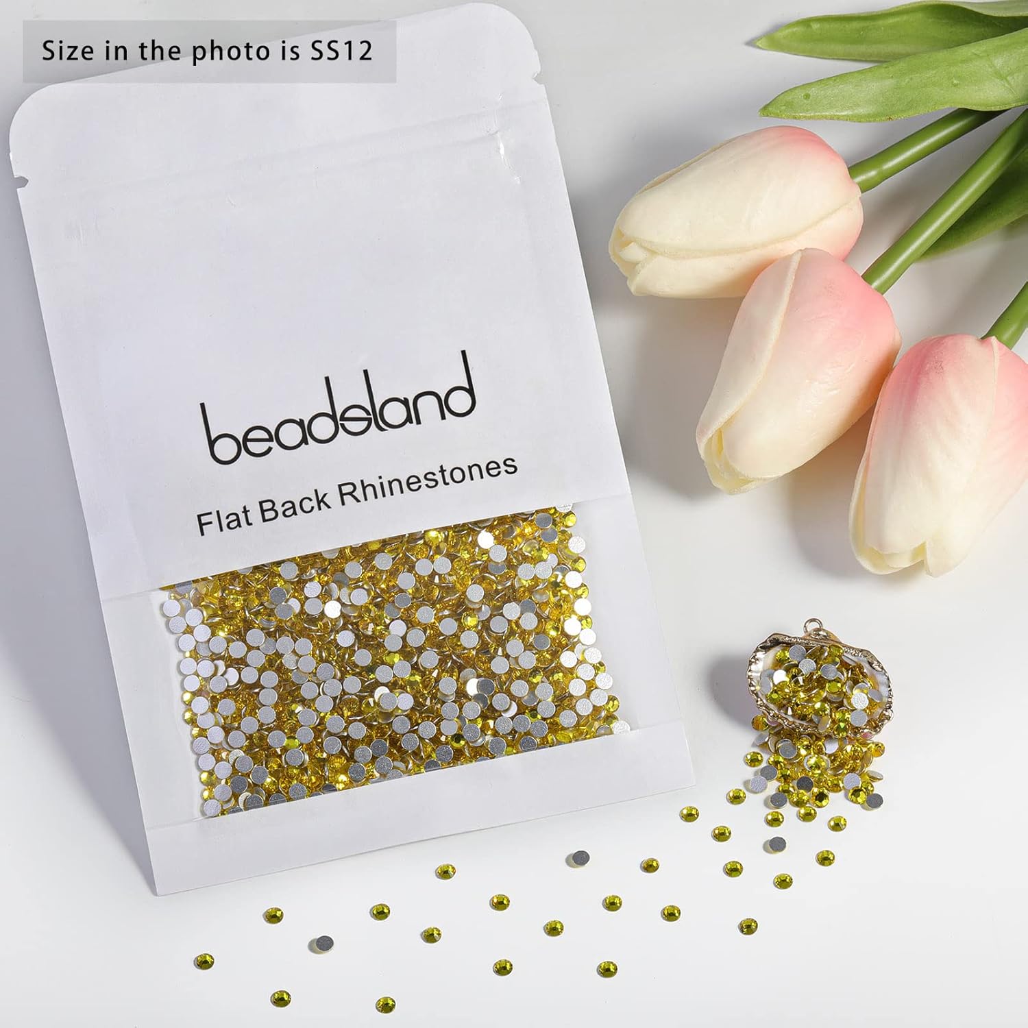 beadsland Flat Back Crystal Rhinestones Round Gems for Nail Art and Craft Glue Fix, Lemon Yellow (2.9-3.0mm) SS12/1440pcs