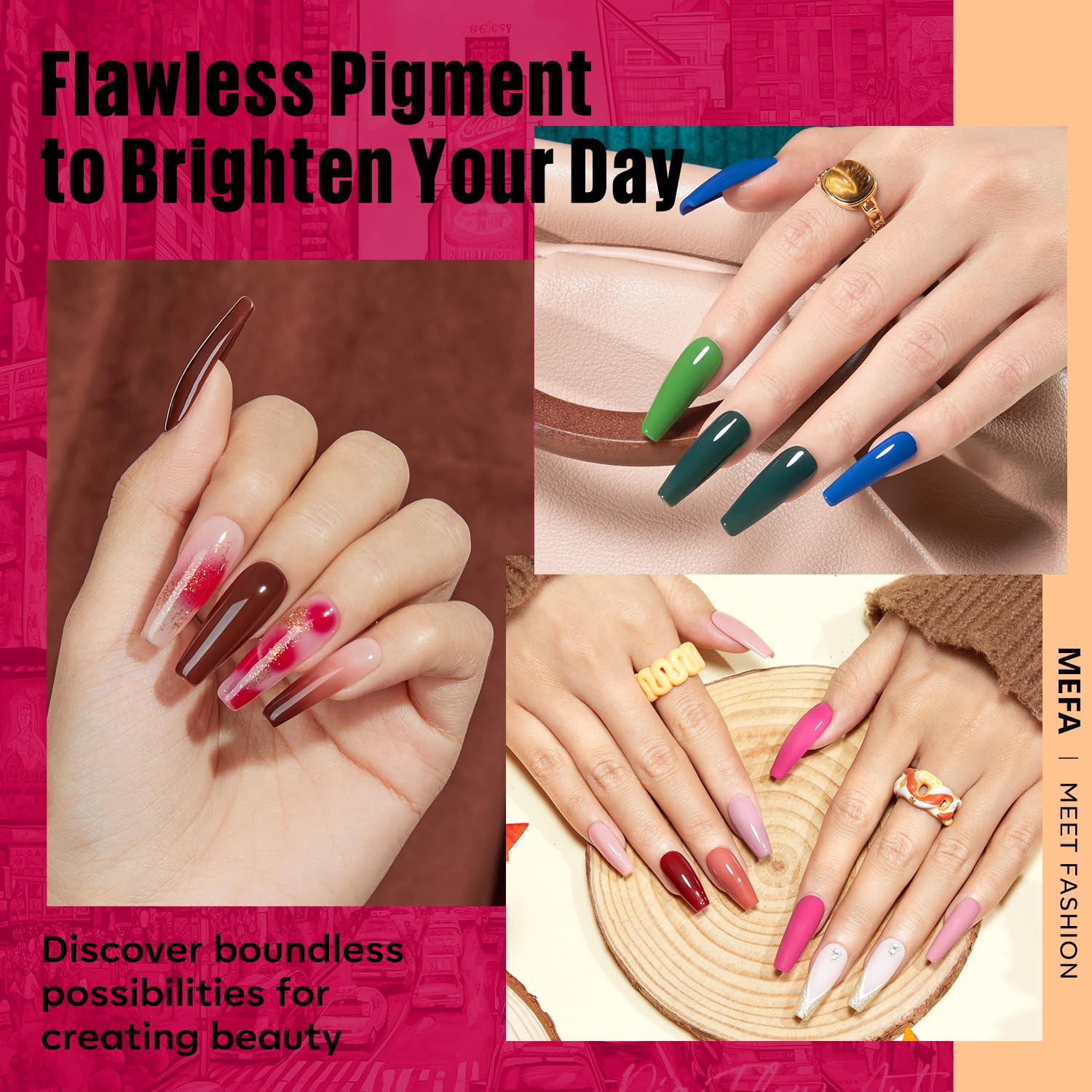 - 32 Colors Gel Polish: MEFA’s fall-winter set features 32 shades (7 ml each), including deep red, burgundy, purple, and champagne gold; perfect for autumn and winter, these trend colors offer looks from cozy purple to elegant nude