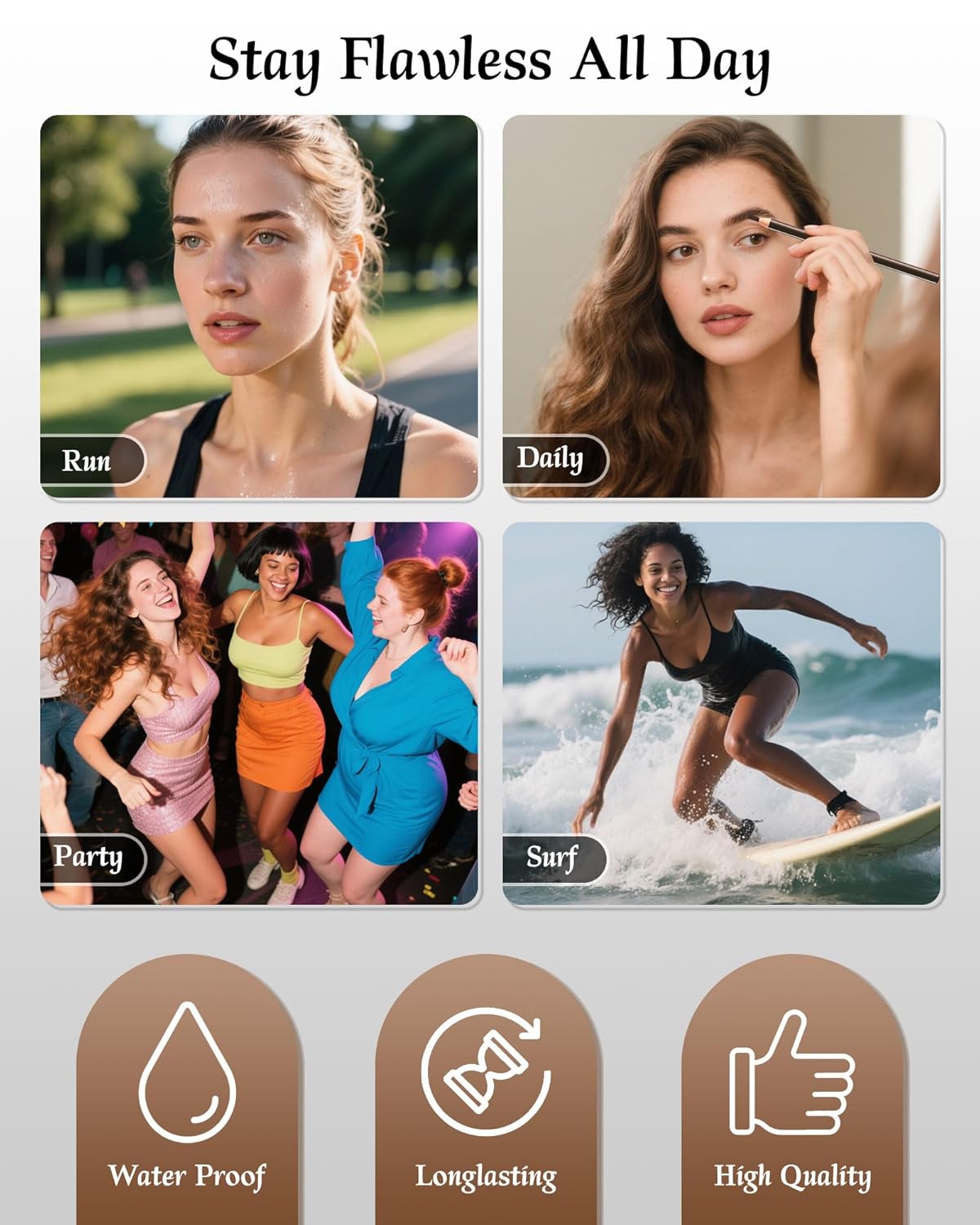 - 16H Waterproof & Smudge-Proof Formula: Sweat-proof, humidity-resistant, and tear-proof! Our long-lasting eyebrow pencils lock in place through workouts, rain, or oily skin. Ideal for active lifestyles β zero fading, zero smudging, just flawless brows