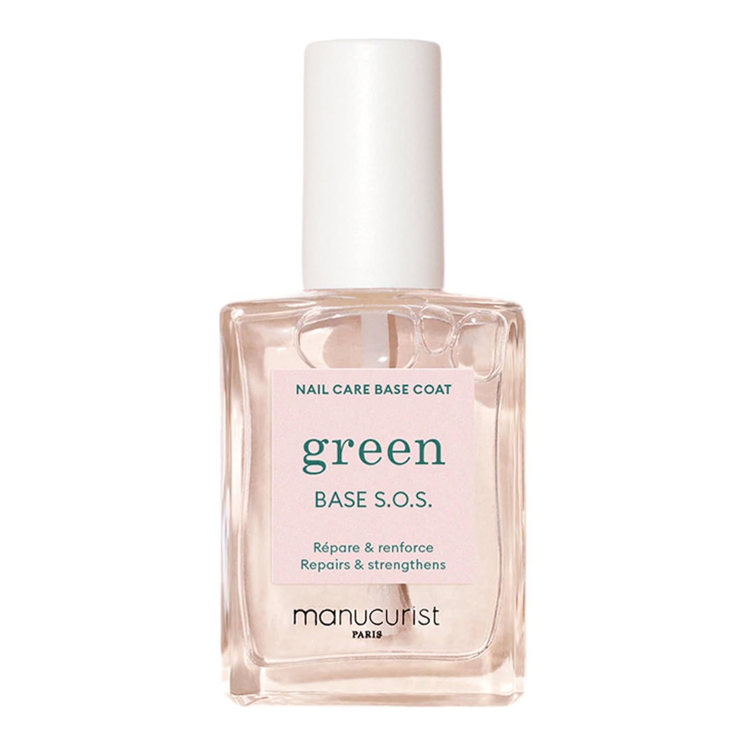 MANUCURIST - S.O.S. Base Coat - Enriched with Vitamins C and B5 - Nail Fortifier - Repairs and Strengthens - Care for Very Damaged Nails - Vegan, Up to 78% Plant-Based - 0.5 fl oz