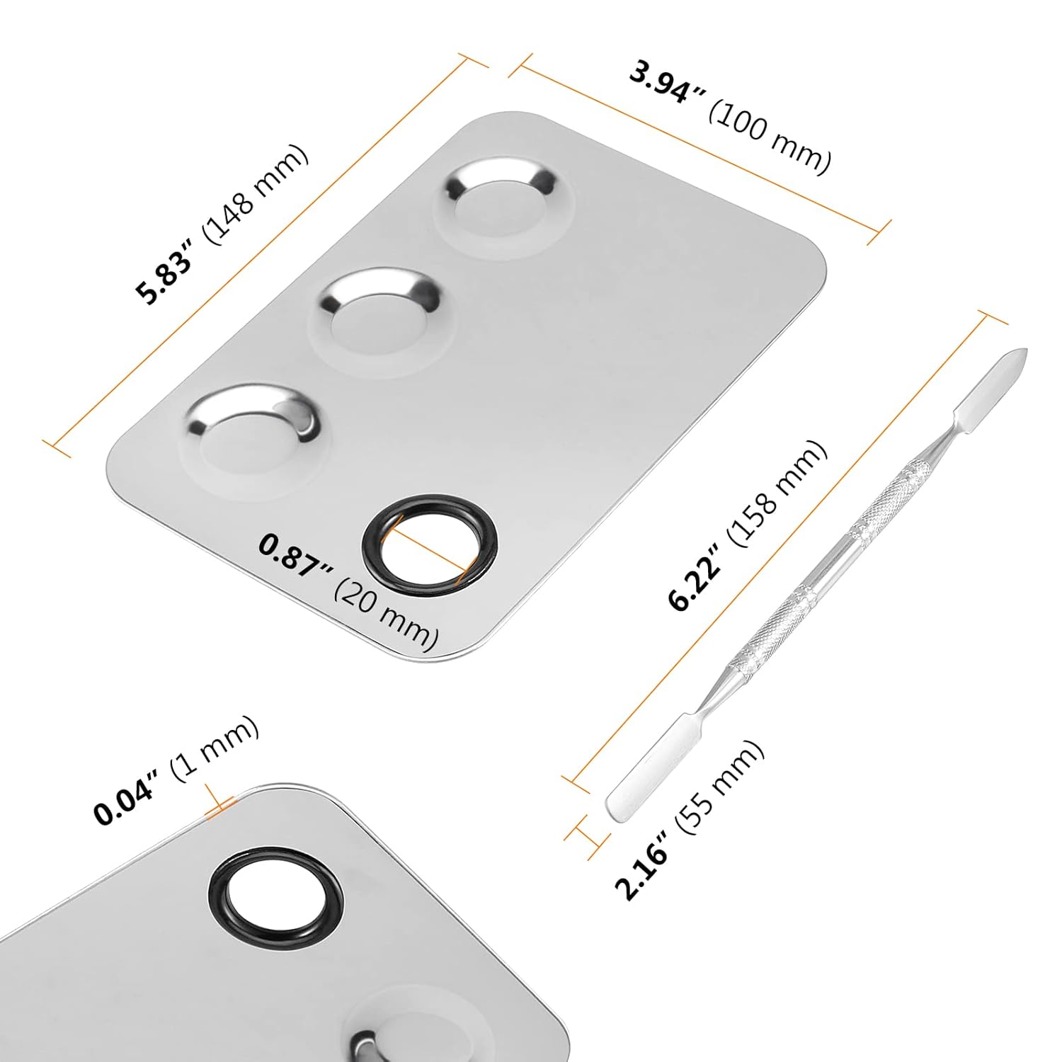 - RELIABLE QUALITY - They are made with high-quality thick stainless steel and are great for a variety of uses. They are well made, very sturdy. Both makeup stainless steel palettes have a silicone ring surrounding the thumb hole, to afford a comfortable nest for the thumb.
