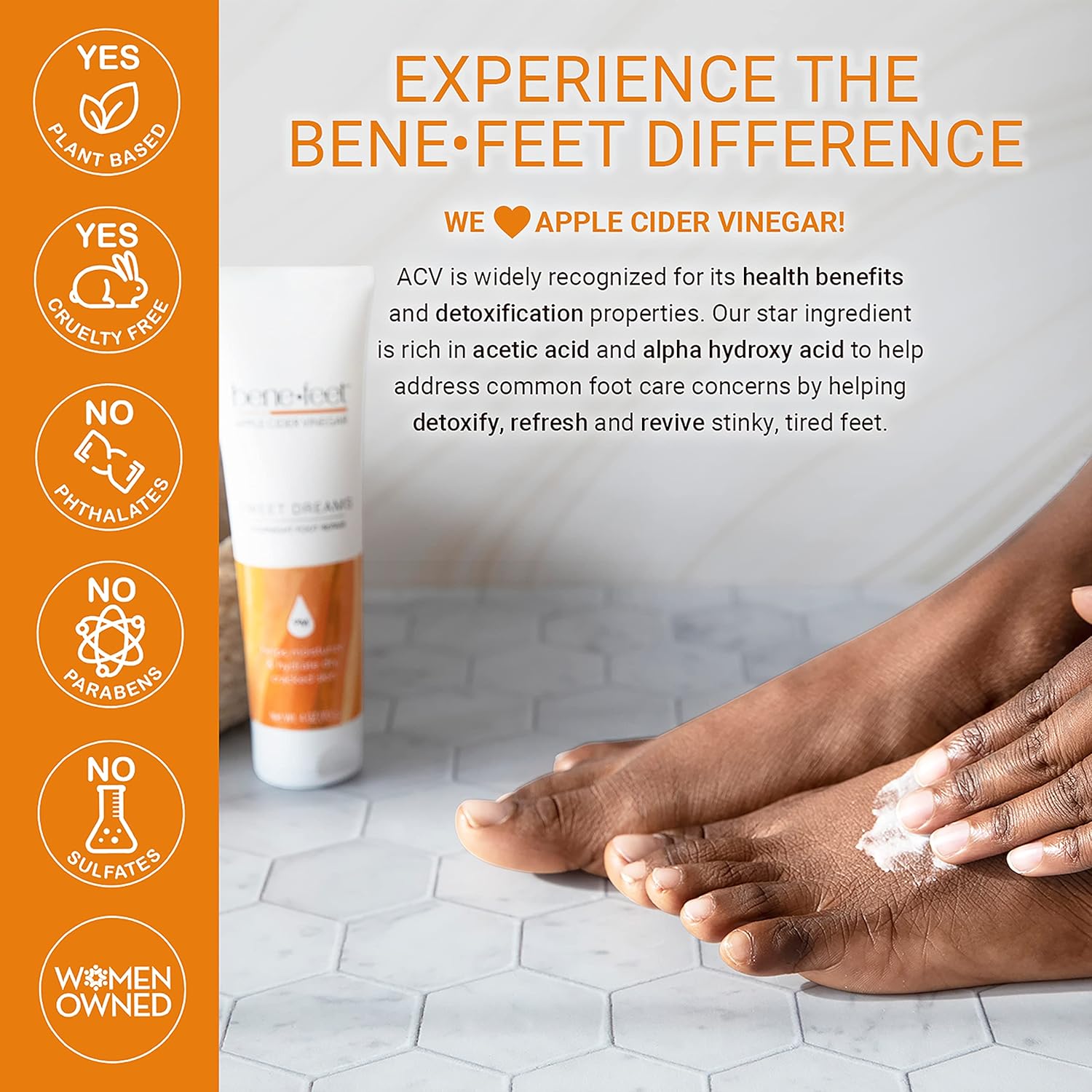 - Cracked Skin Repair: Apple Cider Vinegar blends with oils and botanical extracts to nourish dry, cracked feet and improve skin appearance