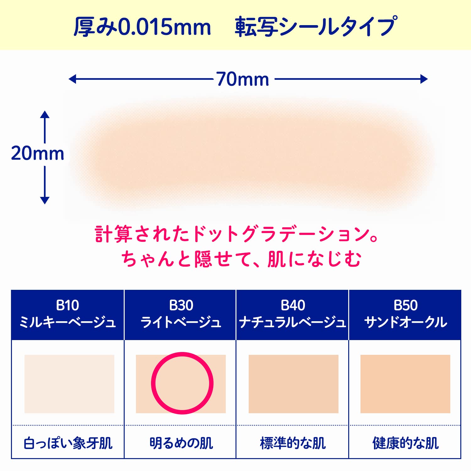 - Ultra-thin 0.015mm, fine dot gradation for excellent skin blending. Unnoticeable.