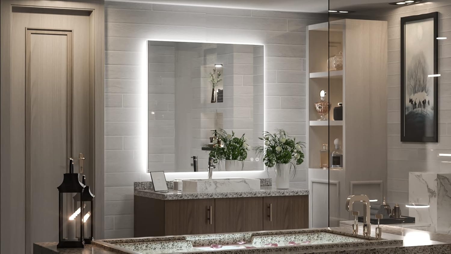 - ✨【Perfect bathroom mirror】-U.S Design Environmental Friendly,Copper free HQ Silver coating glass with IP54 waterproof LED ensures 100% safety in wet bathroom.