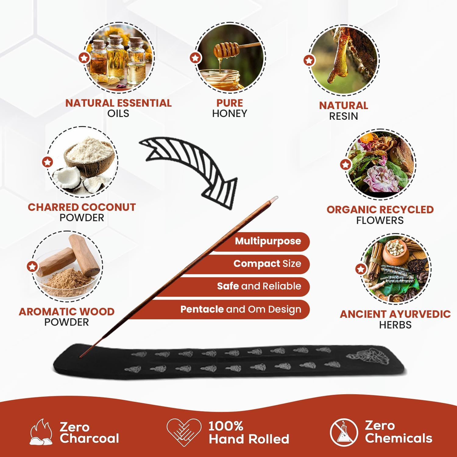 - Eco-Friendly & Handcrafted: The incense sticks are crafted with natural ingredients, free from harmful chemicals, and designed for a clean, long-lasting burn.