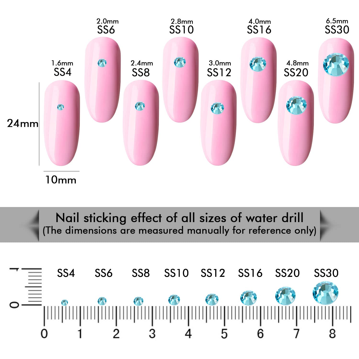 - Different Sizes Available:These rhinestones for crafts come in a wide range of sizes (1.6mm, 2mm, 2.4mm, 2.8mm, 3mm, 4mm, 4.8mm) to suit your different needs