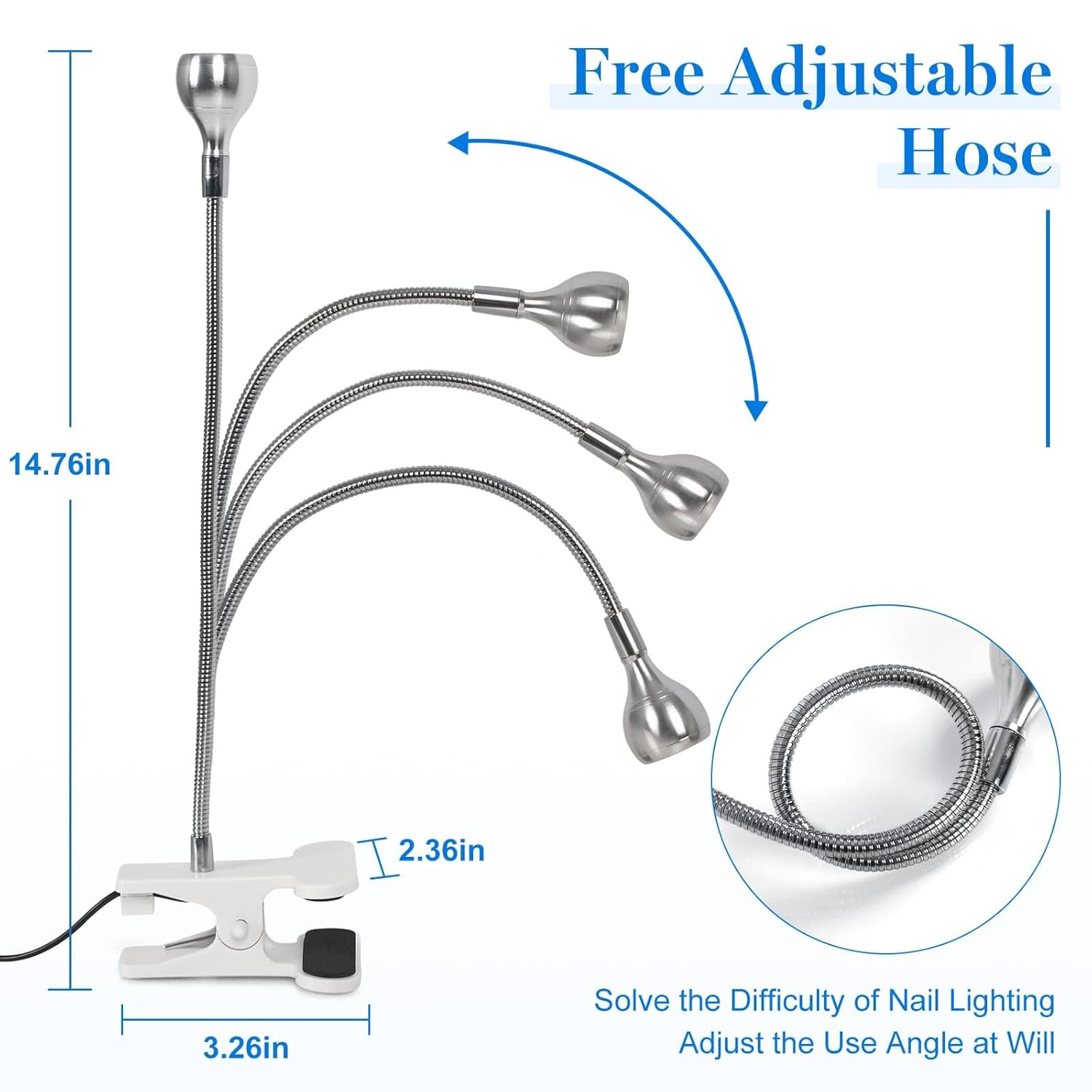 AORAEM U V Nail Lamp - Sliver 3W U V Light for Nails 35NM U V LED Nail Lamp with Gooseneck and Clamp for Gel Nails (AA-Silver)