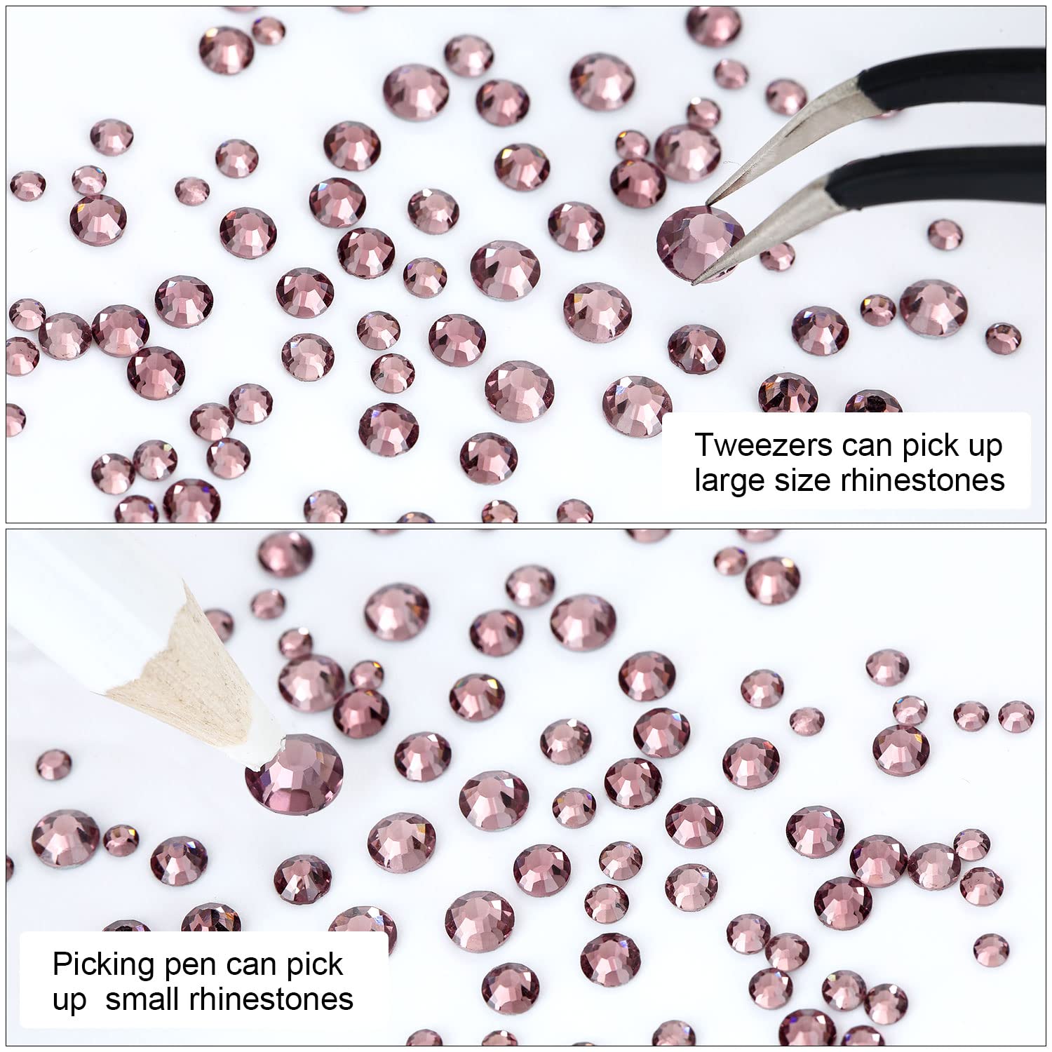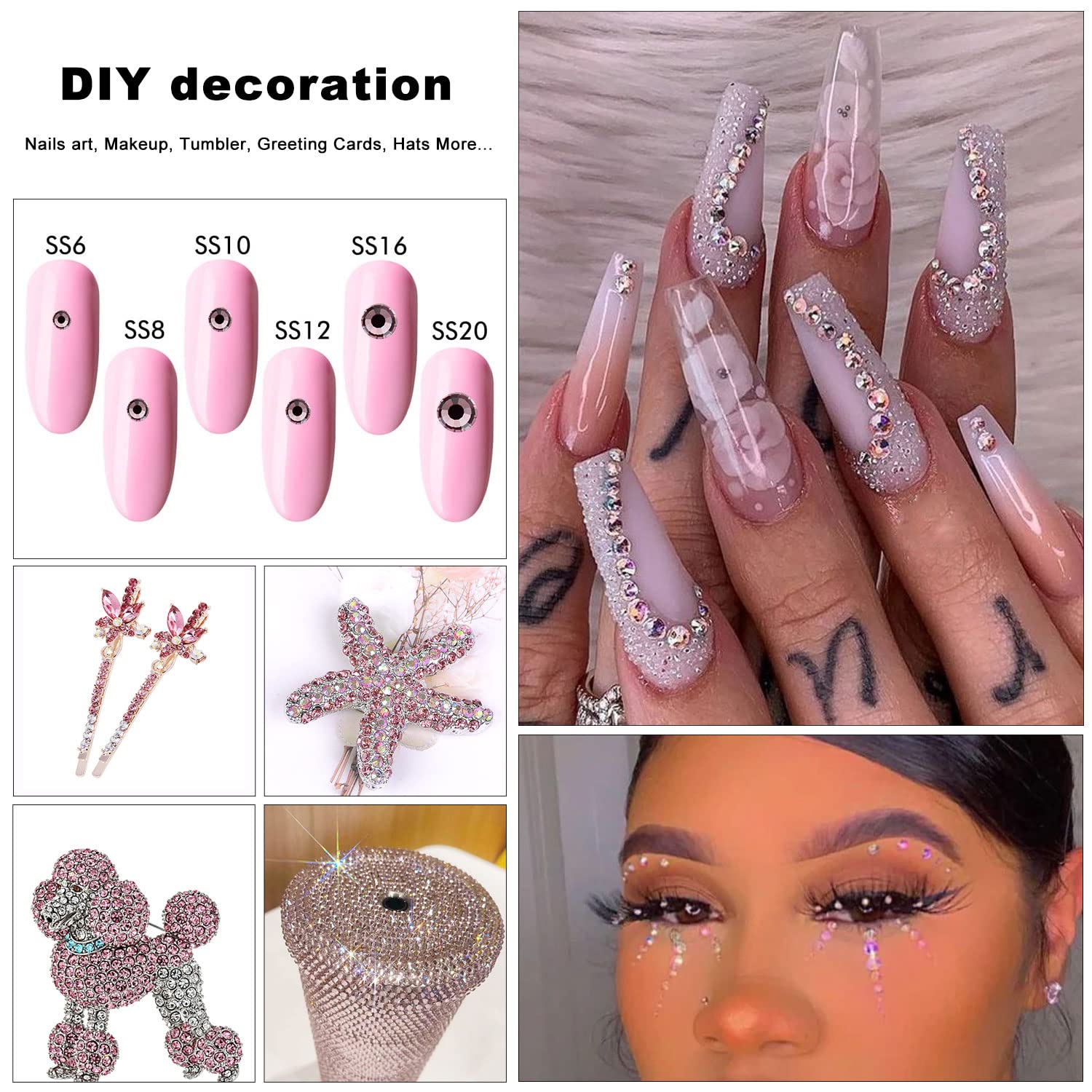 - đź’ŽUse tweezers and Picking Pen gem picker to pick rhinestones, There is no glue on the bottom, additional nail gel is required, or other professional glue for makeup or nails. Can use E6000 super glue to fix on crafts, art decoration. not hotfix.
