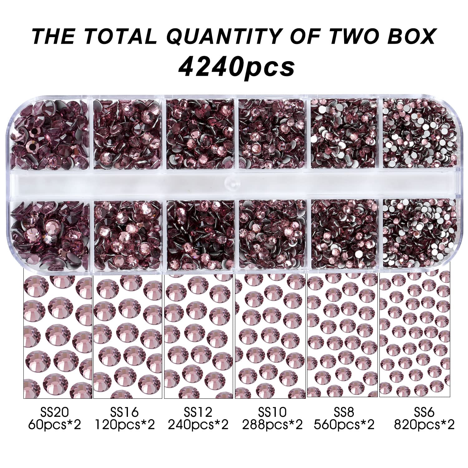 4240Pcs Flatback Light Purple Rhinestones Glass Crystal Diamonds for Nail Art Face Jewels Shiny Round with Tweezers and Picking Pen (SS6~SS20 Set)