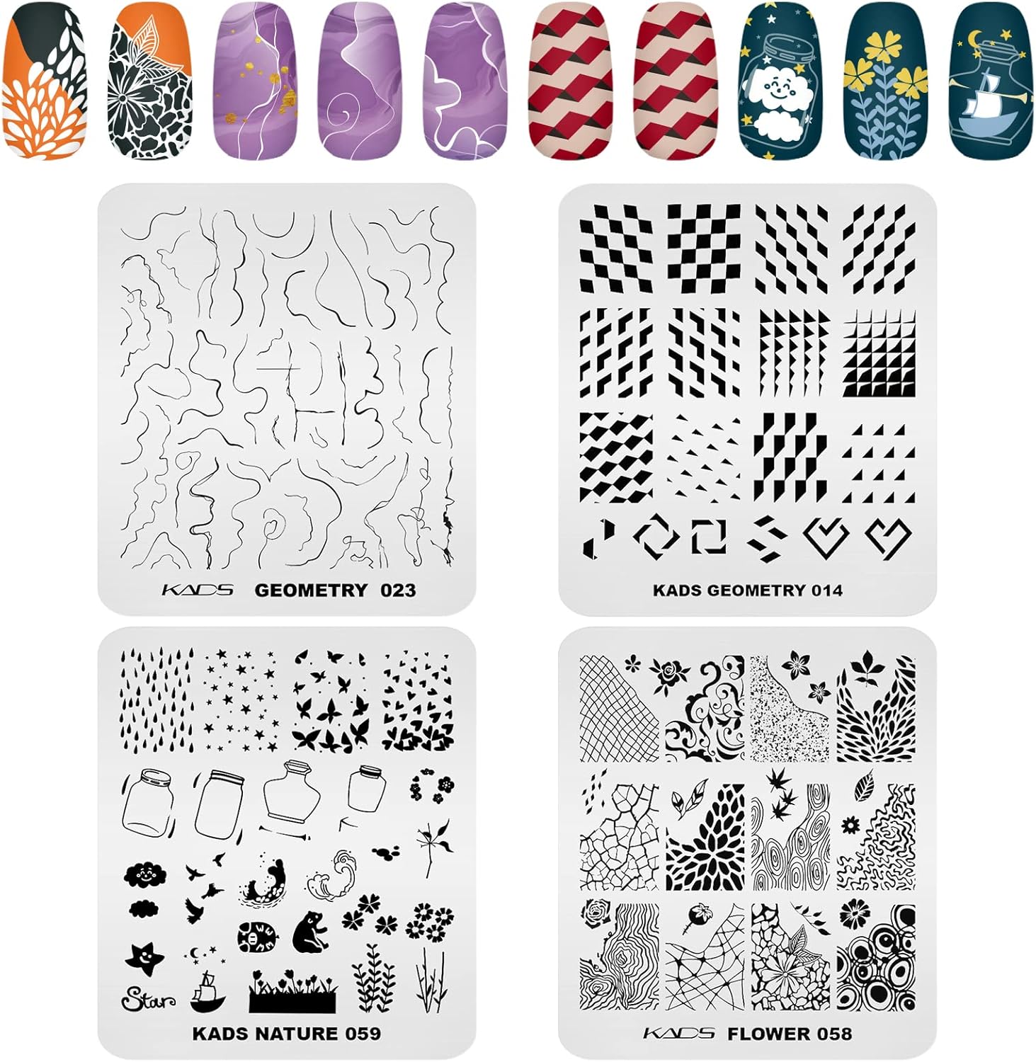 KADS 20pcs Nail Stamp Plates set Nails Art Stamping Plates Leaves Flowers Animal Nail plate Template Image Plate (20Pcs + Stamper)