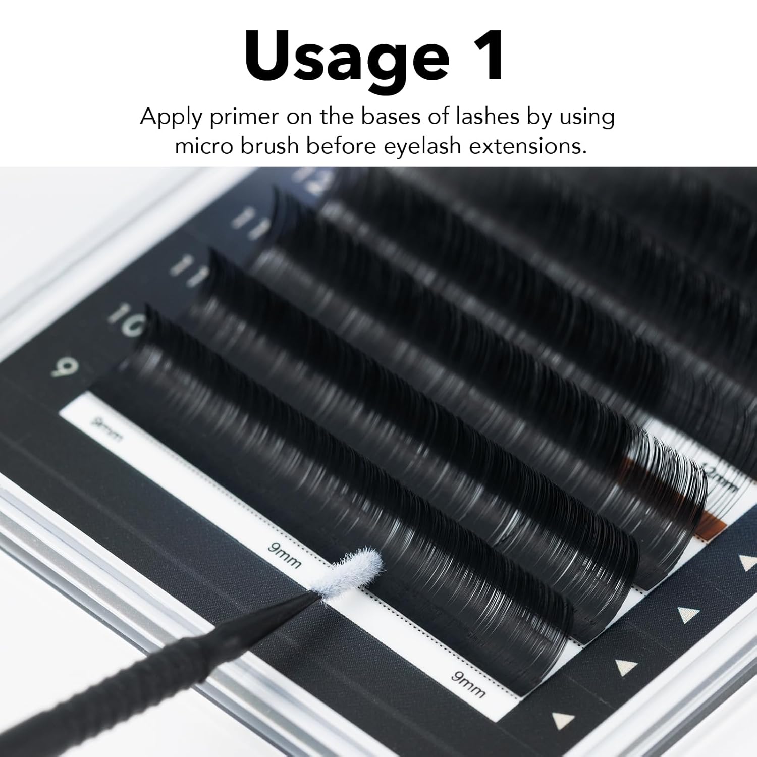 - β HOW TO USE - Method1.Use a cotton swab to dip an appropriate amount of lash extension primer and apply it to the root of the grafted eyelashes (one third of the place); Method2:Before eyelash extension, use a cotton swab to dip an appropriate amount of eyelash primer, directly apply on customer's own eyelashes to remove excess moisture from eyelashes and oil, increase the adhesion of eyelash grafting glue.