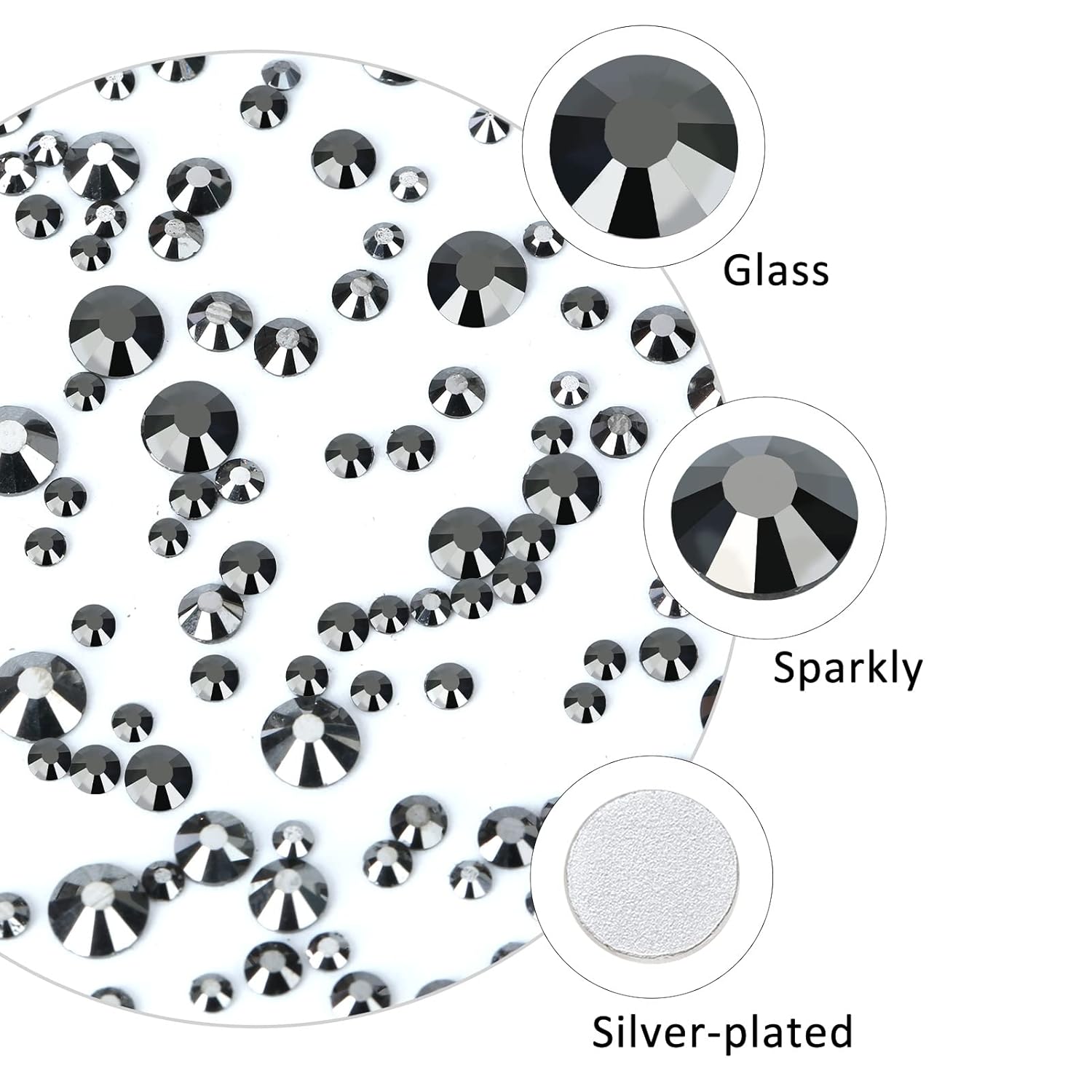 - đź’ŽMaterial: Glass/Artificial Crystal. Surface High-precision cross-section, multi-sided cutting, high brightness,high Sparkly. Flatback, Round,Silver-plated back, not easy to be allergic. The color runs through the rhinestones without fading.