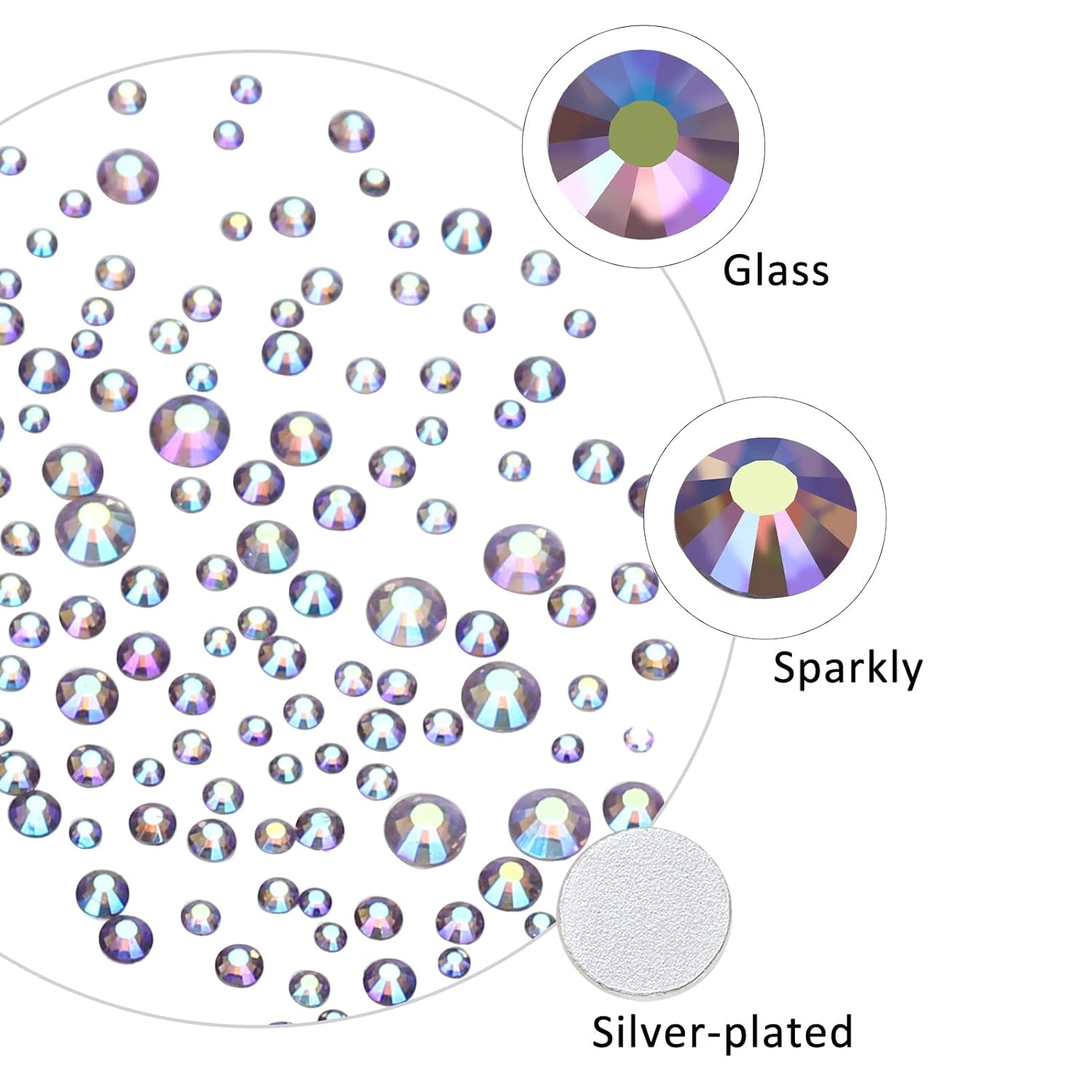 - đź’ŽMaterial: glass/artificial crystal. The surface has a high-precision section, multi-faceted cutting, high brightness and high gloss. Flat bottom, round shape, silver plated back, non-allergenic. The color runs through the rhinestones without fading.