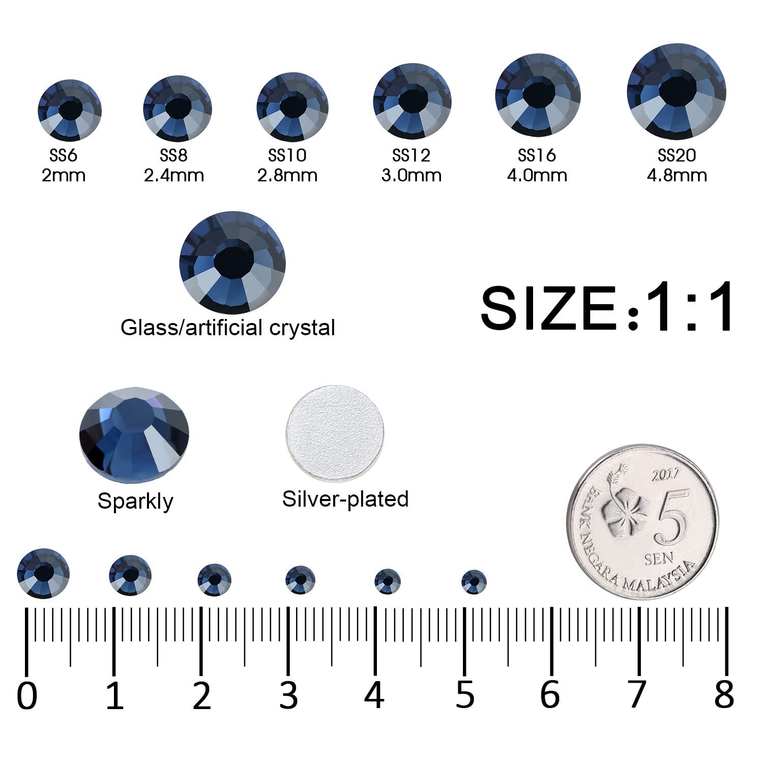 - đź’ŽMaterial: glass/artificial crystal. The surface has a high-precision section, multi-faceted cutting, high brightness and high gloss. Flat bottom, round shape, silver plated back, non-allergenic. The color runs through the rhinestones without fading.