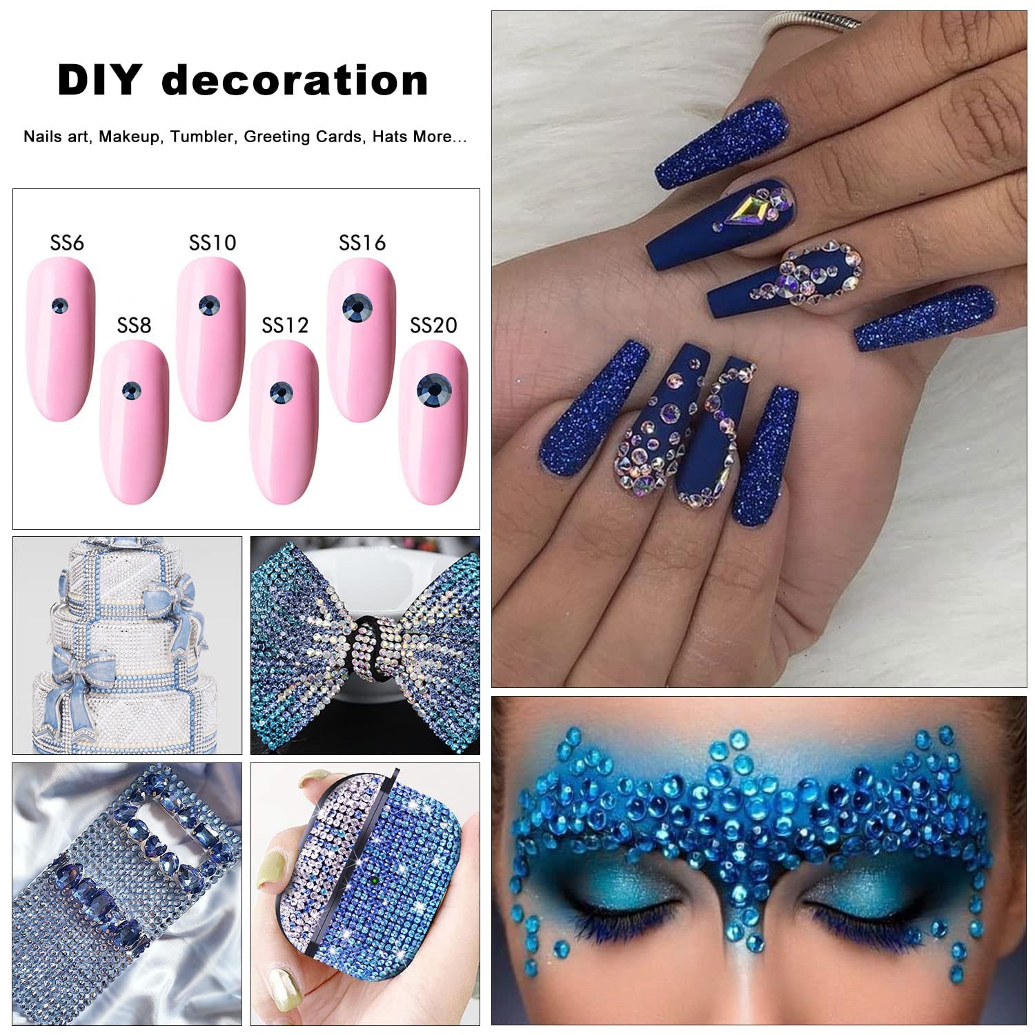 - đź’ŽUses: You can use rhinestones for nails, art, jewelry, skin, teeth, face, eyes, makeup, glasses, crafts, cardstock, cell phones, phone cases, plastic, glasses, etc.