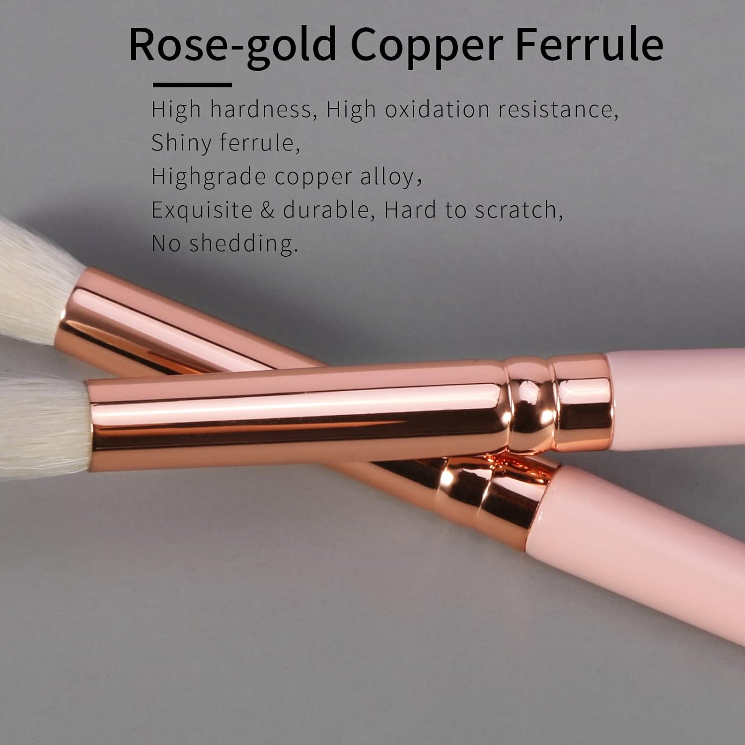 - ♥【Rose Gold Copper Ferrule】▬ Highgrade Copper Alloy, High Hardness, High Oxidation Resistance, Not Easy to Scratch, No Shedding, Exquisite & Durable Eye Shadow Make Brushes Real Hair, Travel Eyeshadow Brush Fit for Fast Application.