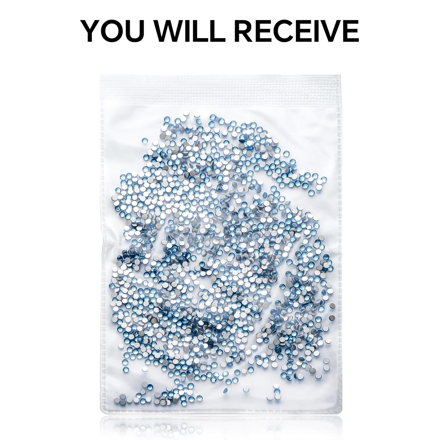 1440Pcs Light Blue Crystal Rhinestones,Glass Flatback Rhinestones Gemstones Small for Nail Face Makeup Art Crafts Clothes Decoration - (SS6,2.0mm,Light Blue)