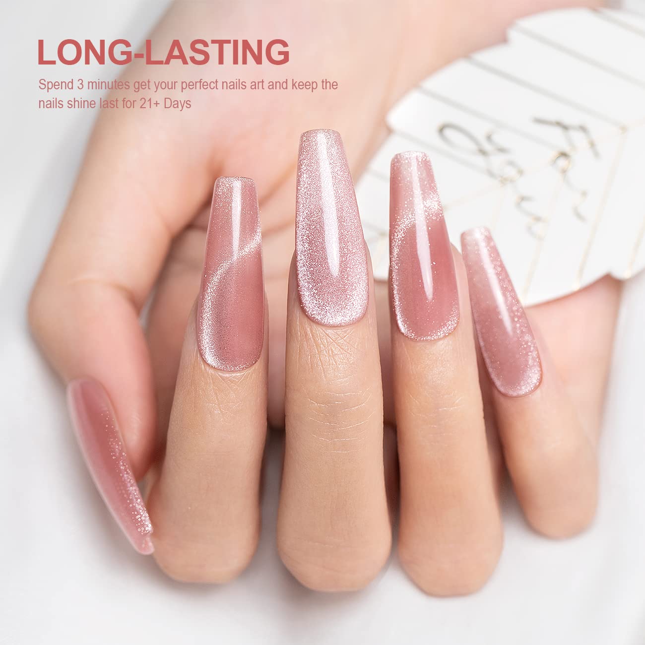 - EASY TO APPLY:This nude color cat eye gel polish is made with with natural resin ingredients,magnetic shimmers,translucent pigments and a smooth formula,so this gel polish set won't cause smudges cracks, or chips.It can last for 21+ days with perfect shine under proper application