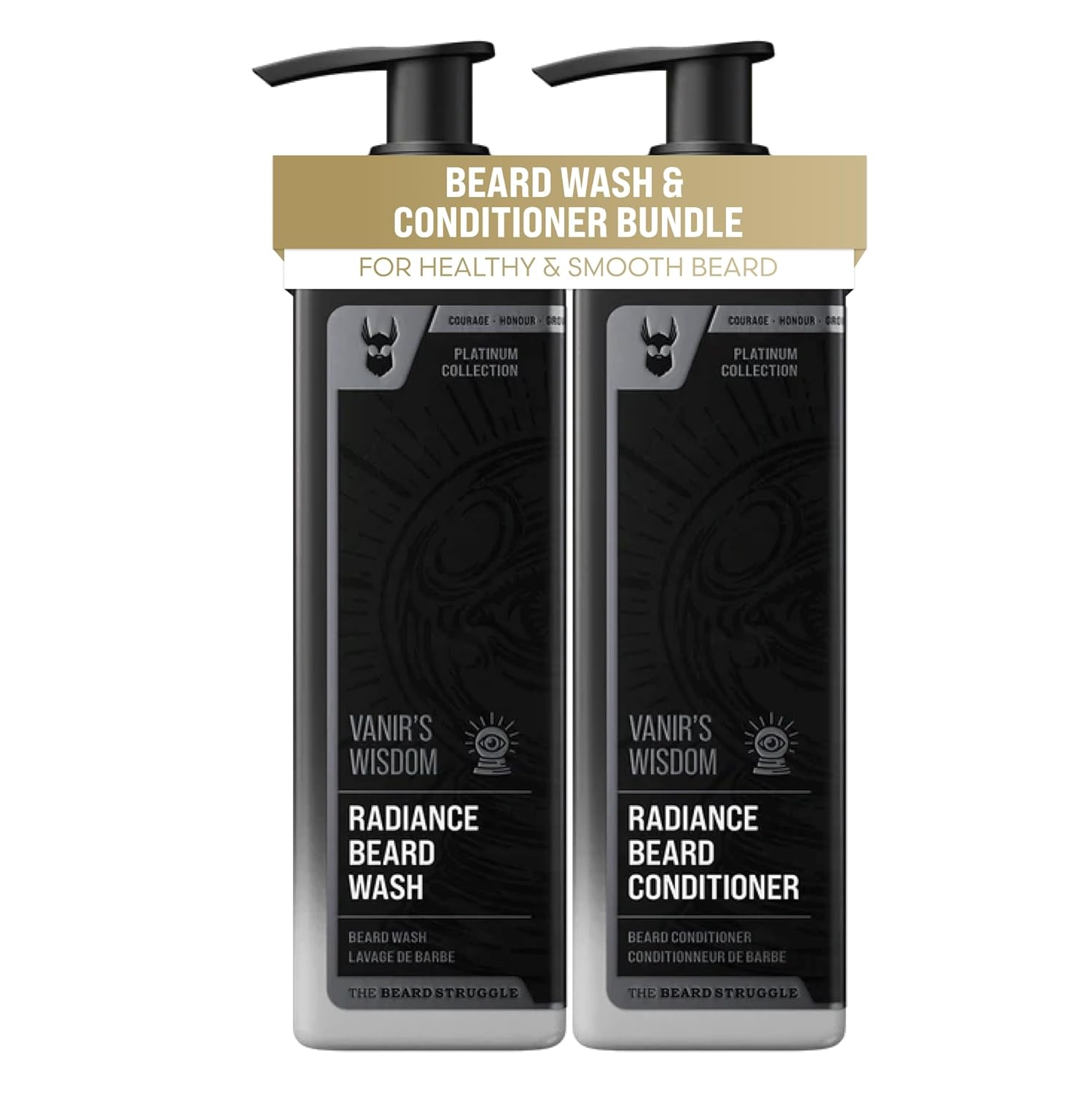 The Beard Struggle Radiance Beard Wash & Conditioner Bundle - Platinum Collection - Pack of 2 - Vanir's Wisdom - 8 Fl Oz each - For Men - Nourish, Cleanse, Soften, & Strengthen Beard