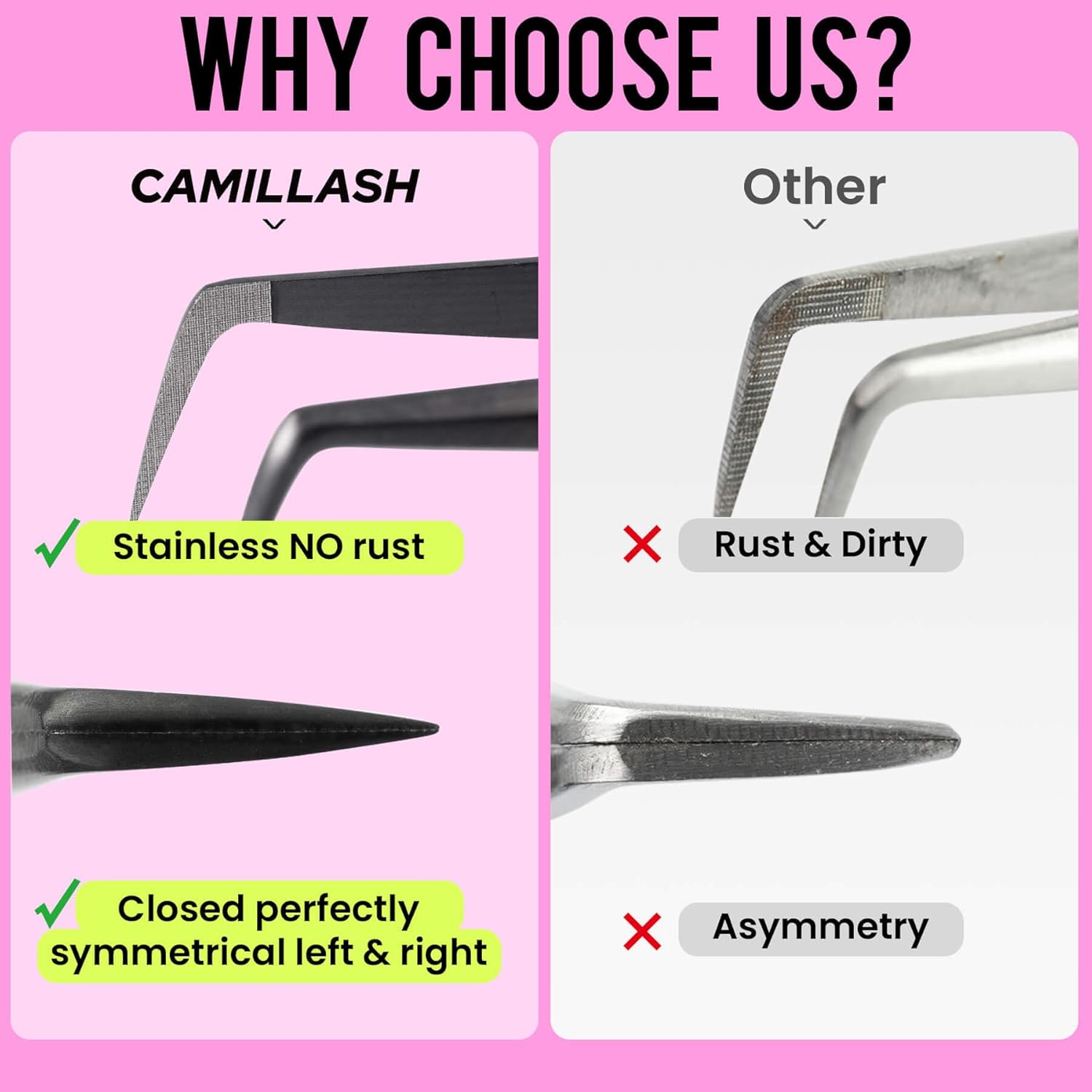 - Hand tested: All of our tweezers are hand tested multiple times before it is shipped out to ensure a perfect grip when pulling the lashes off of the strip.