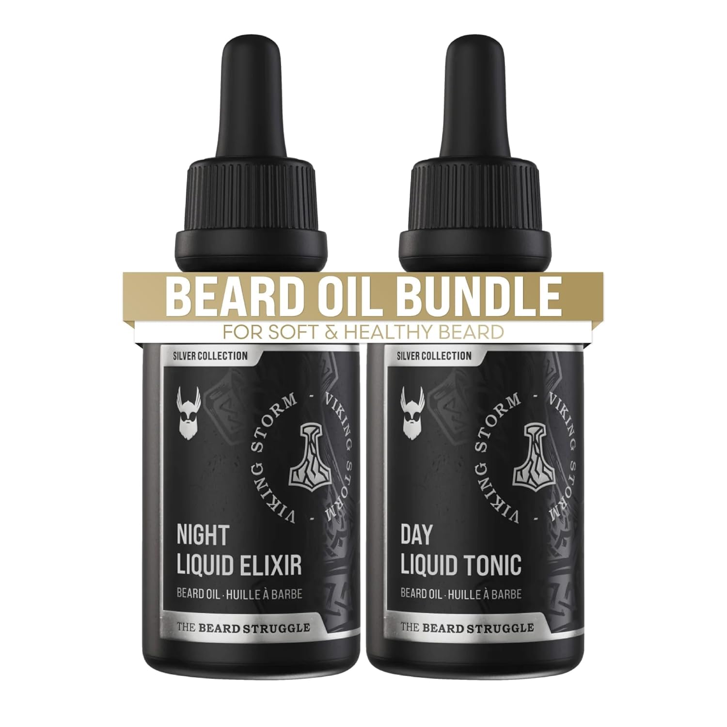 The Beard Struggle Tonic + Elixir Beard Oil Bundle - Silver Collection - Grooming Beard Oil - Softens, Moisturizers, and Strengthens Beard Growth - Pack of 2, Viking Storm
