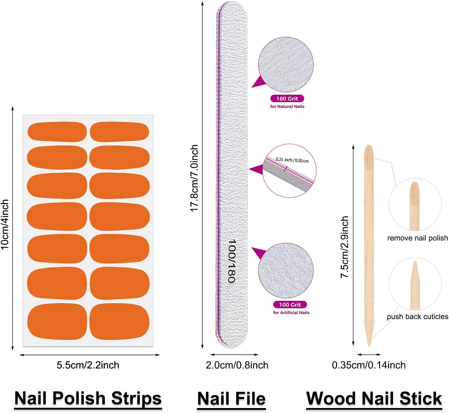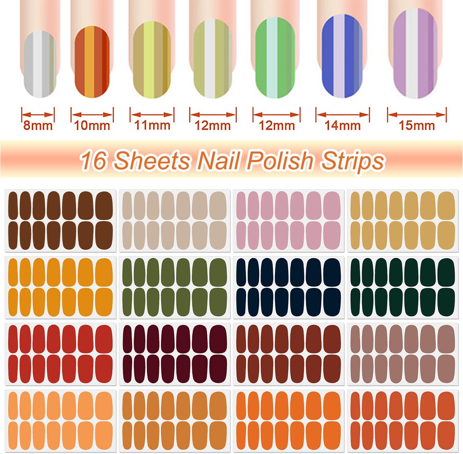 - [Package Included] you will get 16 sheets nail stickers full nail wraps, each nail strips has 14 pieces nail tips and 7 sizes, to suitable for most people's nail size. the attached nail file and cuticle stick will help you finish the nail work better.