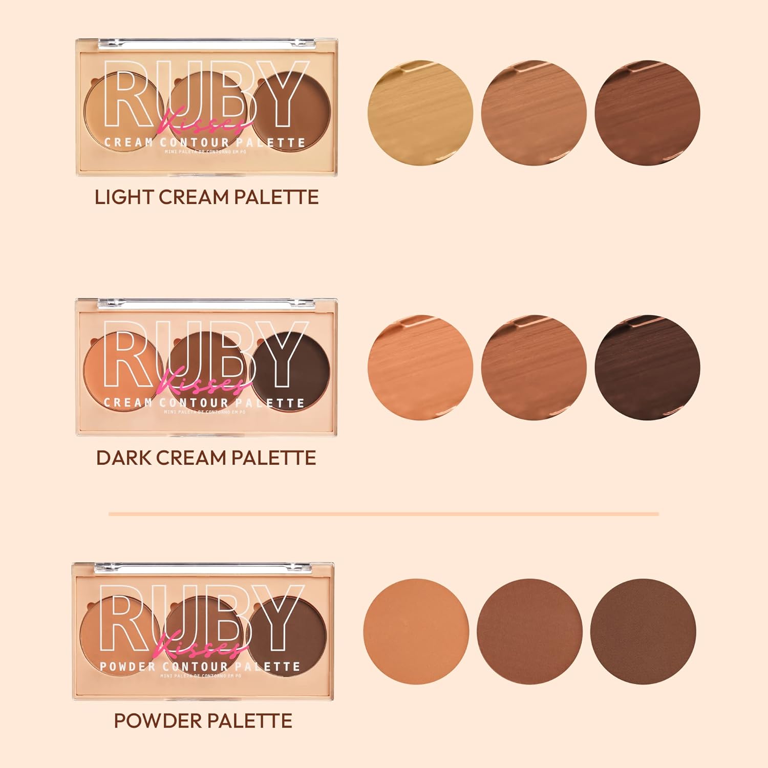 Ruby Kisses Contour Palette 3-in-1 Contour, Conceal, Highlight All-In-One Mini Palette, Long-Lasting, Easy to Blend Cream Contour Palette for Oily and Dry Skin (Medium To Tan)