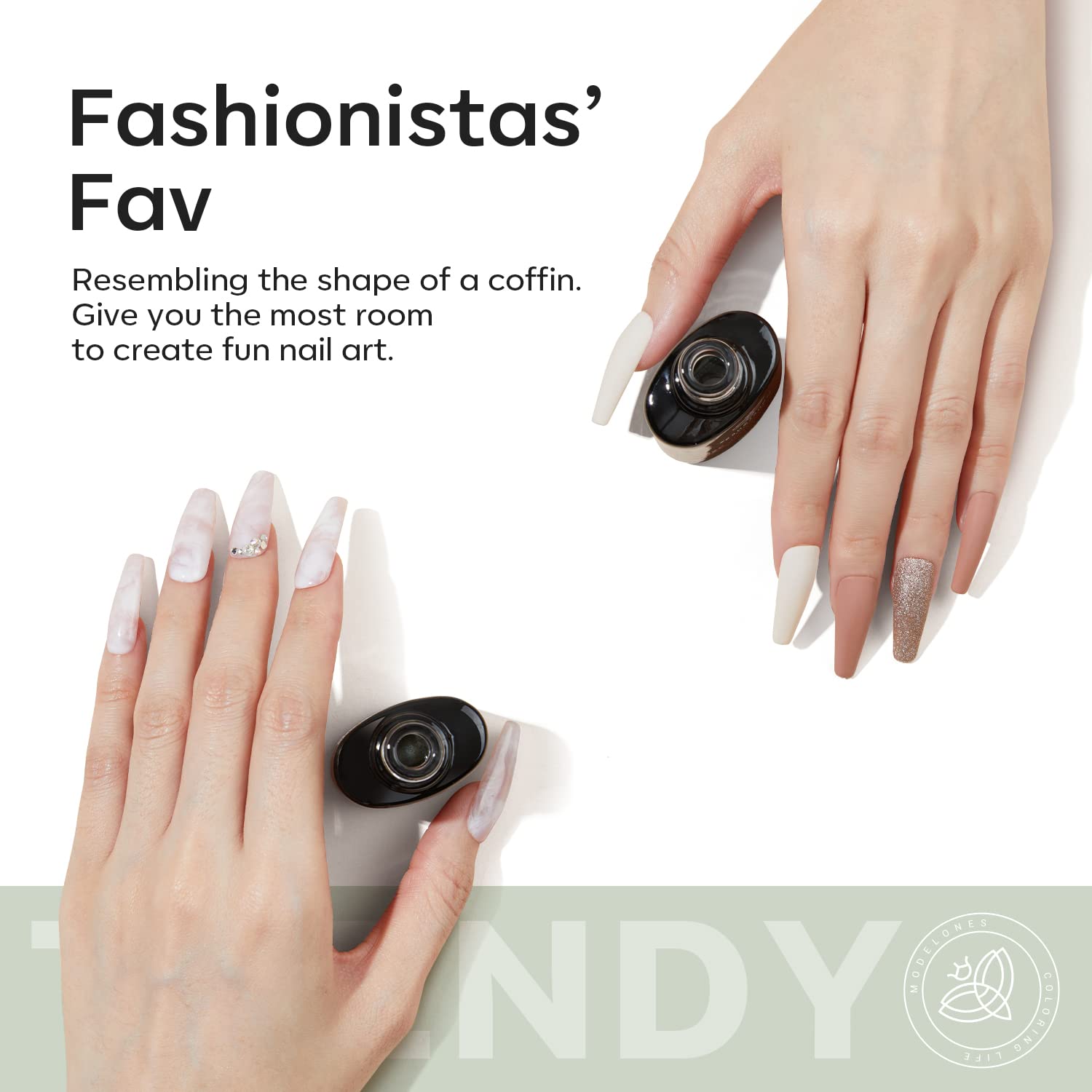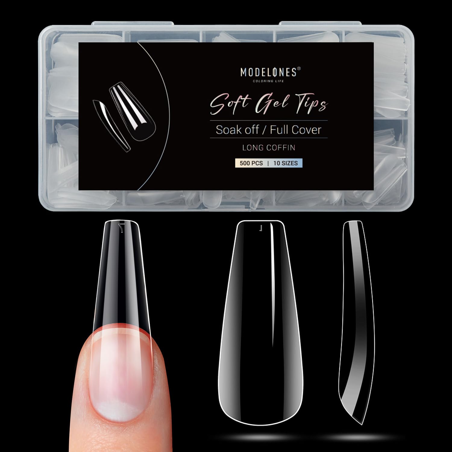- Upgraded Clear Coffin Nail Tips: You can easily extend your nails and enjoy the fun of diy manicures with modelones pre-buff gel nail tips! Pre-shape tips no need file and save much time, more sturdy sticking, easily make salon nail effect instead of dropping money at an expensive salon