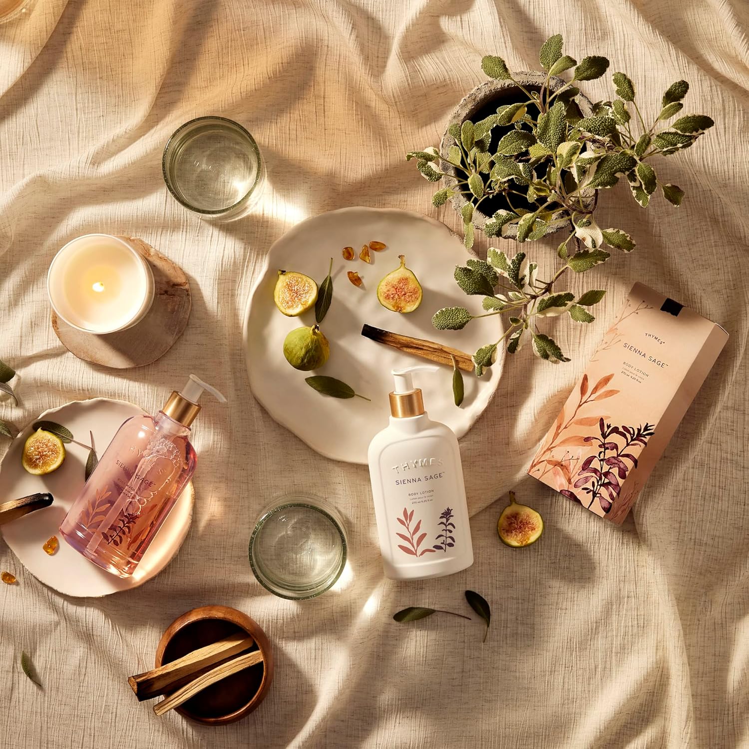 • Sienna Sage Fragrance: A warm fragrance that inspires moments of comfort and self-care. Our Sienna Sage luxury fragrance products are scented with notes of warm palo santo wood, soft amber, and clary sage that effortlessly blend with the soothing aroma of creamy benzoin resin and green fig.