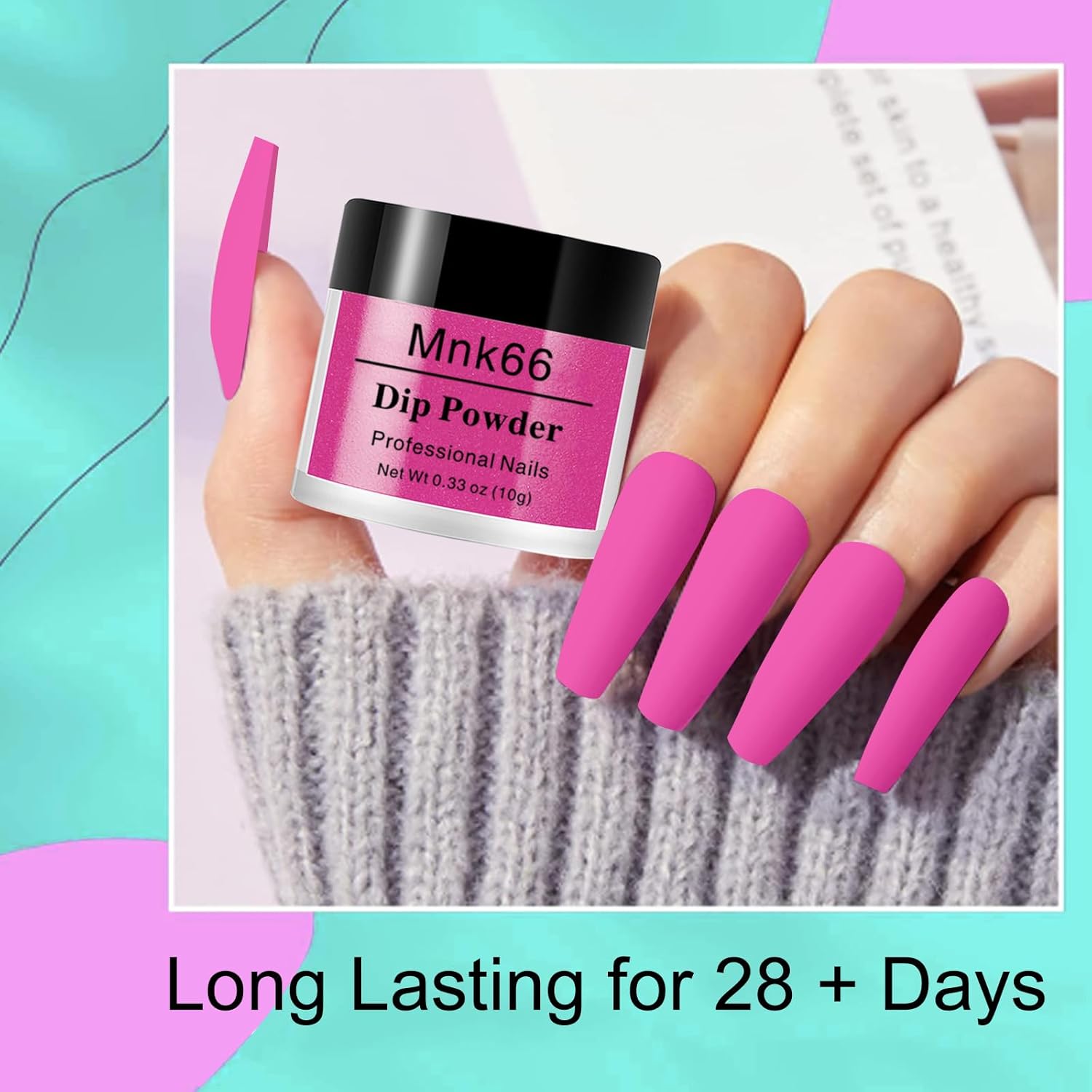 - EASY TO USE - Mnk66 Neon Nail Dip Powder Summer colors set doesn't need LED nail lamp to cure, dry faster and skin-friendly, smooth and even with glossy and natural effect. More long-lasting than other regular dip powders. Easy to apply with dip liquid, suitable for beginners and professional nail salons. TIPS - The effection of dip powder will be showing different between 2~3 coating.