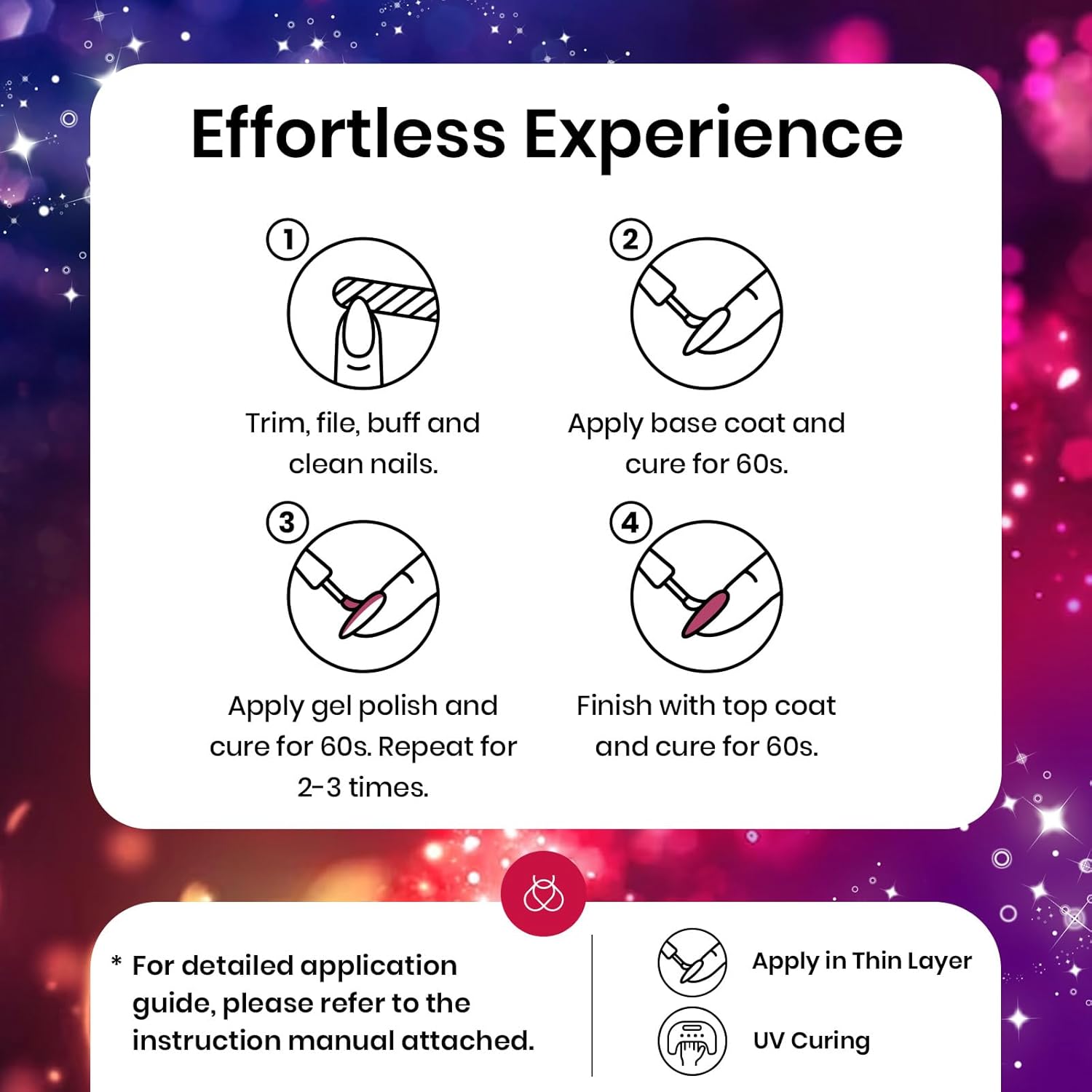 - 【Easy Application and Long-lasting】: Beetles 20 colors gel polish kit is long-lasting for 28+ days with a perfect shine under proper application - With base gel top coat under the full application process. Highly recommend a minimum of 60-120 seconds with a Uv Led light.