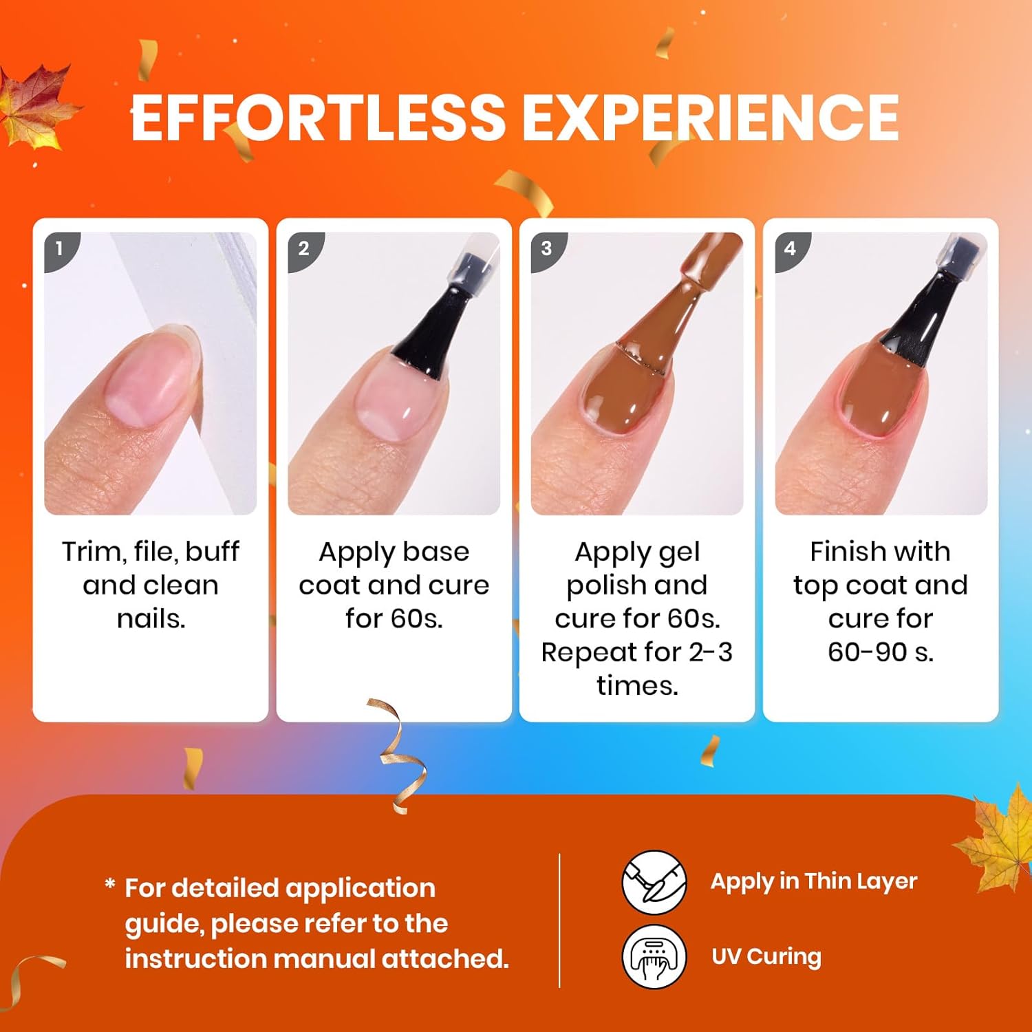 - Easy Application and Good Tenacity: Beetles cat eyes fall gel polish kit is long-lasting for 28+ days with perfect shine under proper application - with a base gel top coat under the full application process and needs to be cured under LED/UV light for 60-120 seconds.