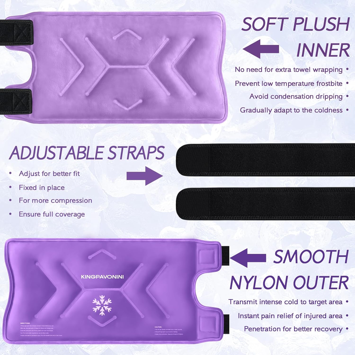 XXL Knee Ice Pack Wrap Around Entire Knee After Surgery, Reusable Gel Ice Pack for Injuries, Large Ice Bags for Pain Relief, Swelling, Sports Injuries, 1 Pack (Purple)