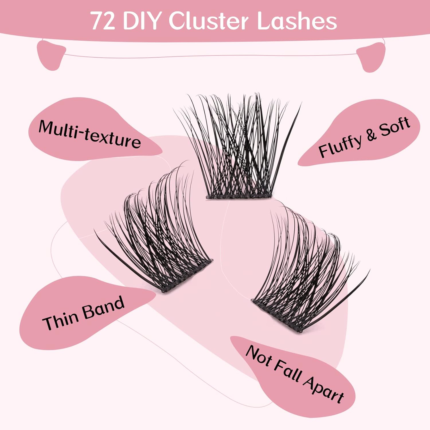 • Comforatable And Reusable: Our brand eyelash clusters have super thin band and they are very lightweight. Comfortable to wear the whole day and whole night. Individual cluster lashes can be reused up to 5 times if they are nice cared.
