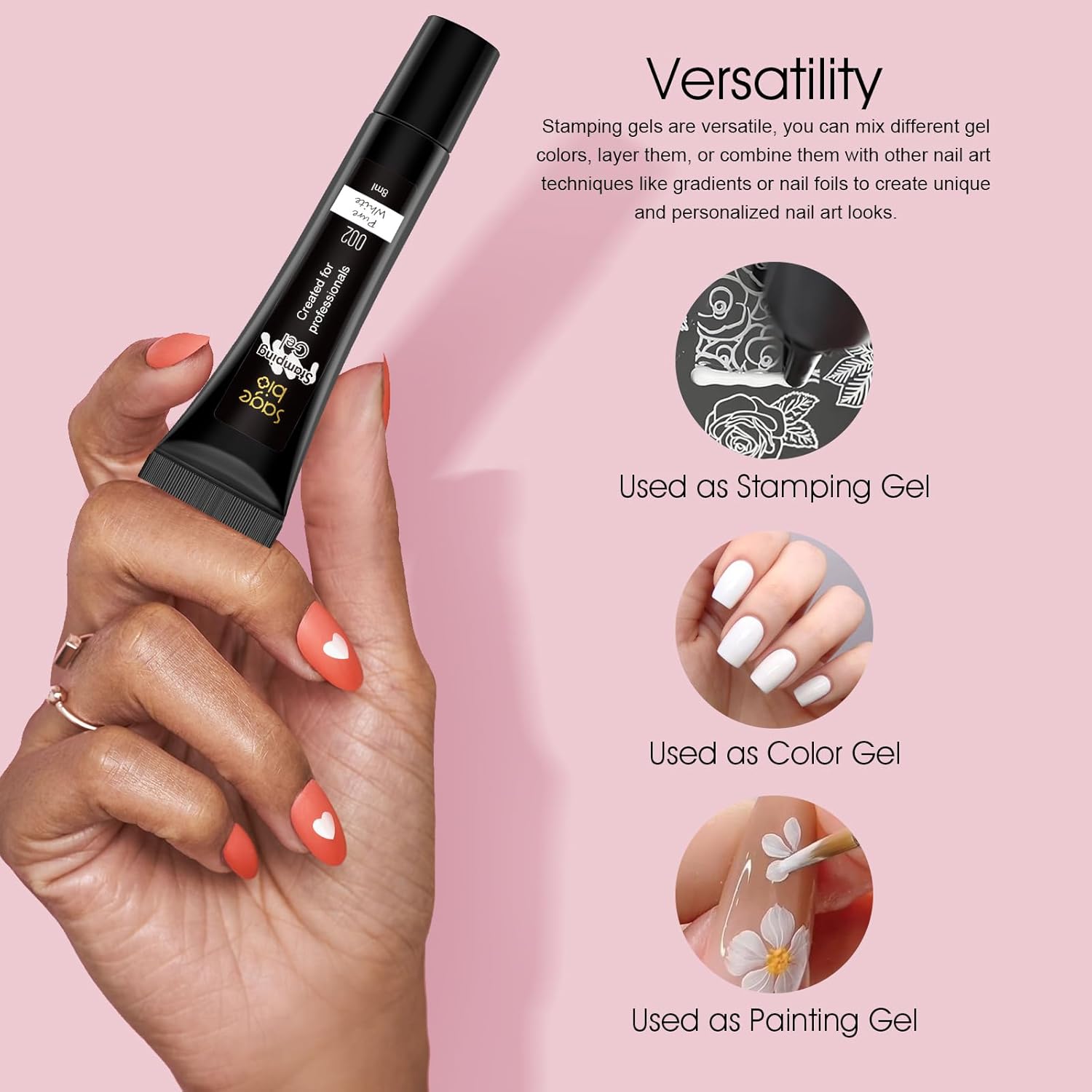 - 【You Will Get】8 Colors of stamping polish gels; 5*stamp plates; 1*stamper with 2 stamp heads; 1*scraper. Capacity of stamp gels- 8ml/0.27fl.oz. This stamping gel polish will enhance the performance of our stamping kit and allow you to fully enjoy the beautiful designs on the template plates.