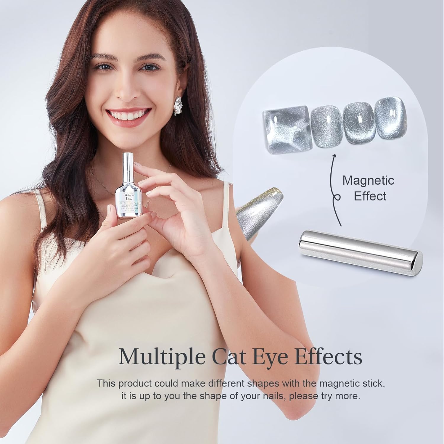 - Unique Magnetic Effect: Create captivating cat eye nail art with SAGEBIO's special magnetic gel polish and included magnet stick.