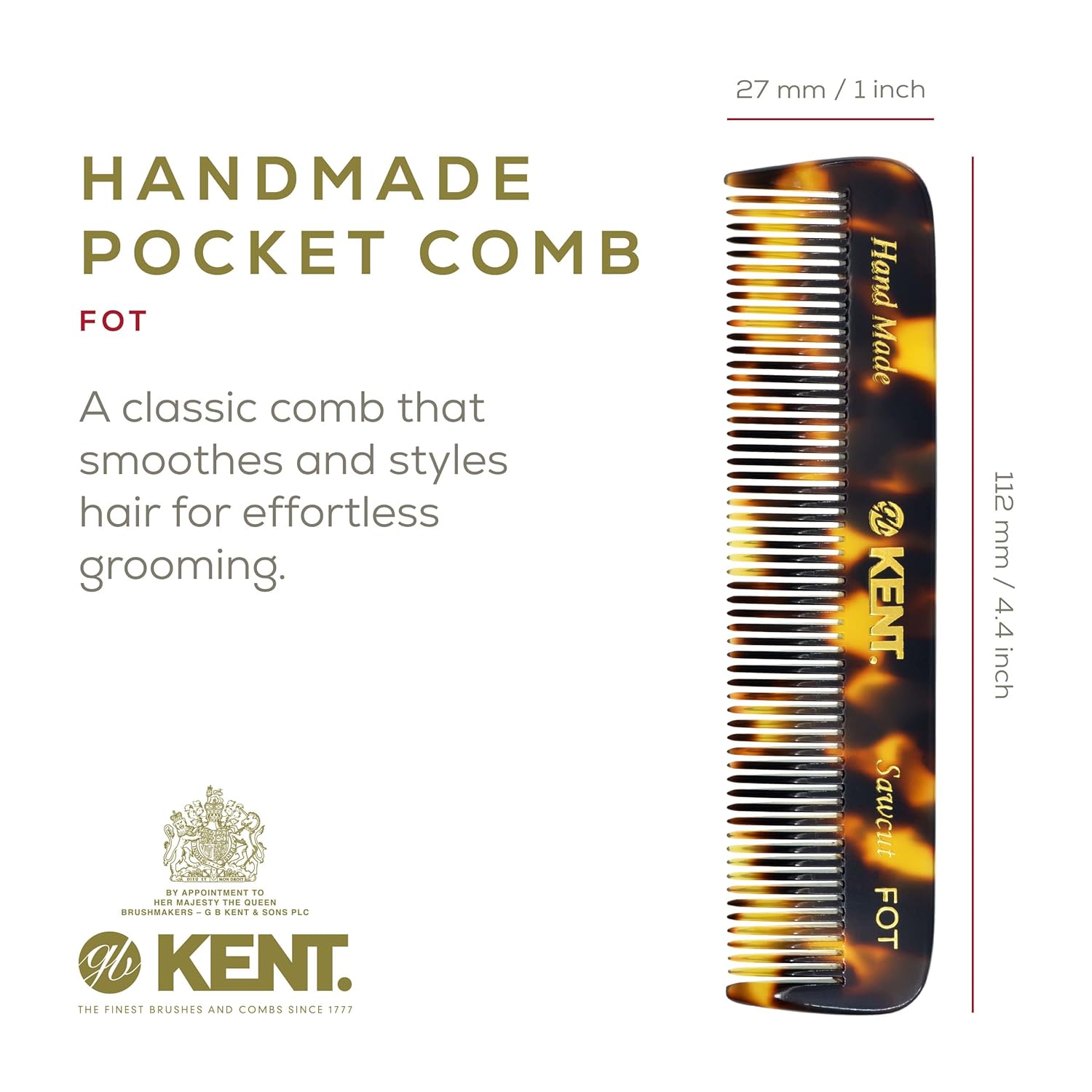 Kent FOT Tokyo Yellow Fine Tooth Comb for Men - Handmade Pocket Comb for Travel, Styling, Fine or Thinning Hair, Mustache and Beard Care Handpolished Saw-Cut Made in England