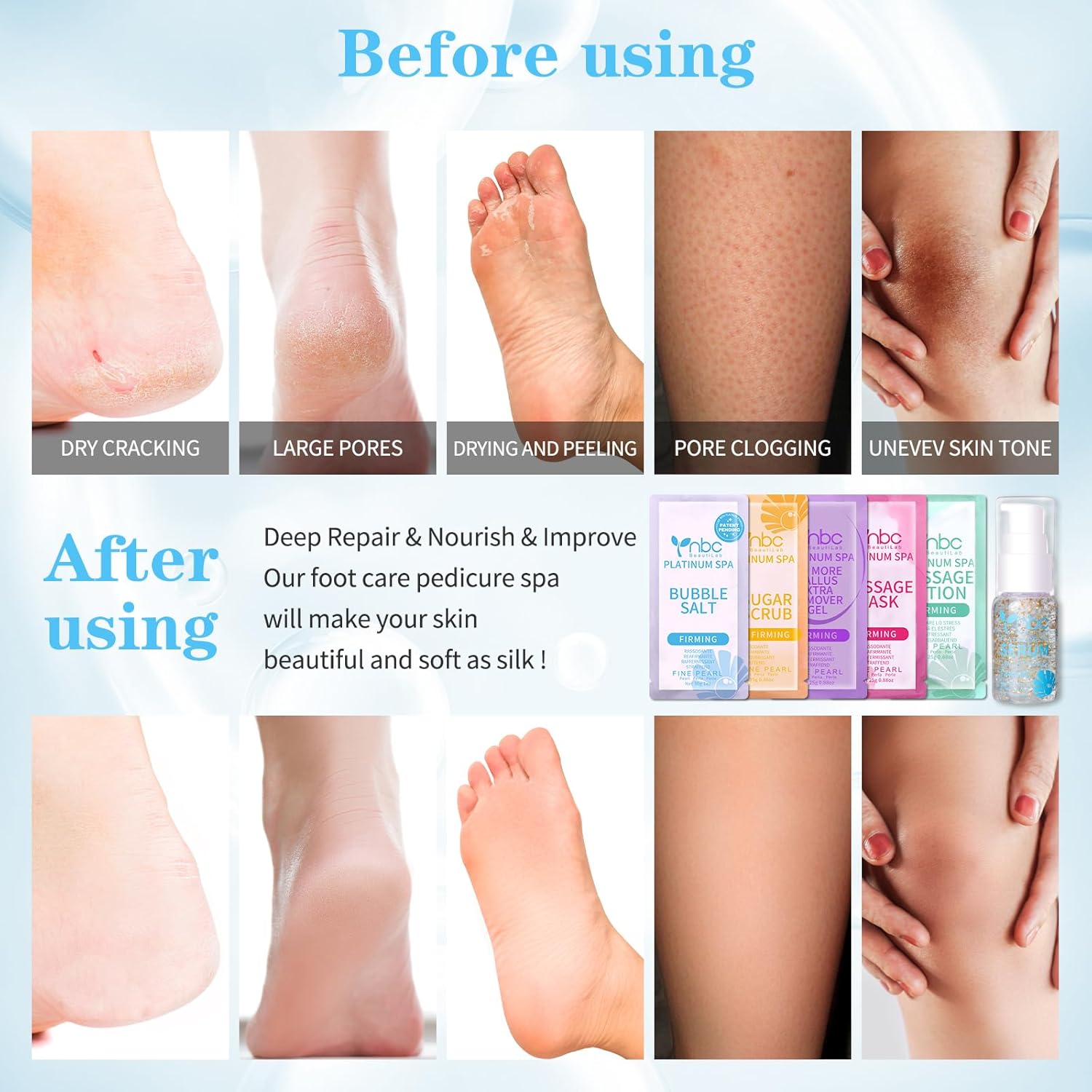 - π[Individually Packaged Foot Spa] This foot soak is individually packaged unlike other products that are only available in jars and containers. This guarantees a clean and hygienic source to your foot care. You can find 6 products per pedicure kit making it easy to travel with, allowing you to enjoy the spa experience anytime, anywhere.